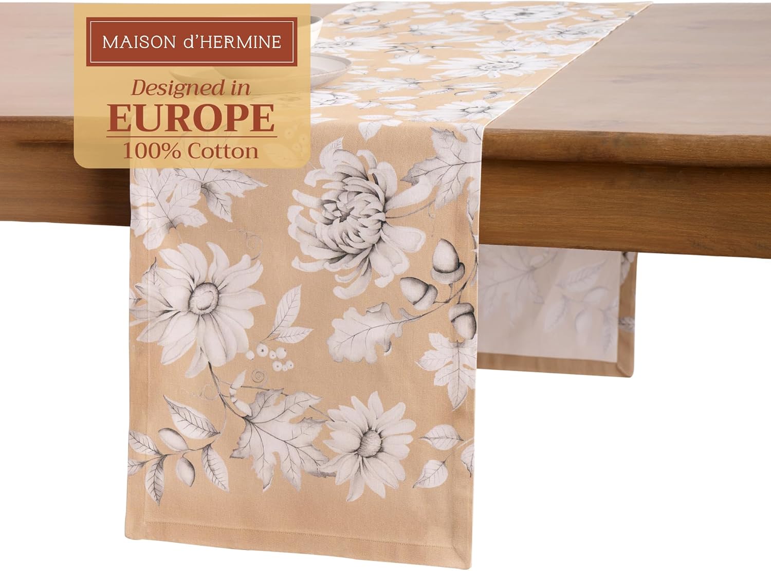 Maison d' Hermine Table Runner 100% Cotton Single Layer Table Runners 72 inches Long for Thanksgiving Christmas Decorations Home Kitchen Dining Party Wedding (Pretty Autumn, 14.5" x 72")
