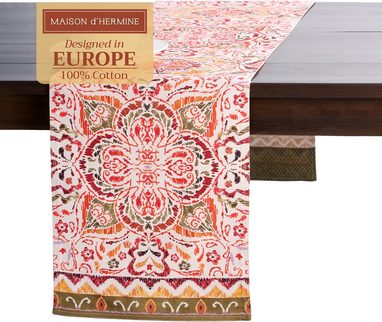 Maison d' Hermine Table Runner 100% Cotton Double Layer Table Runners 72 inches Long for Thanksgiving Christmas Decorations Home Kitchen Dining Party Wedding (Damask, 14.5" x 72")