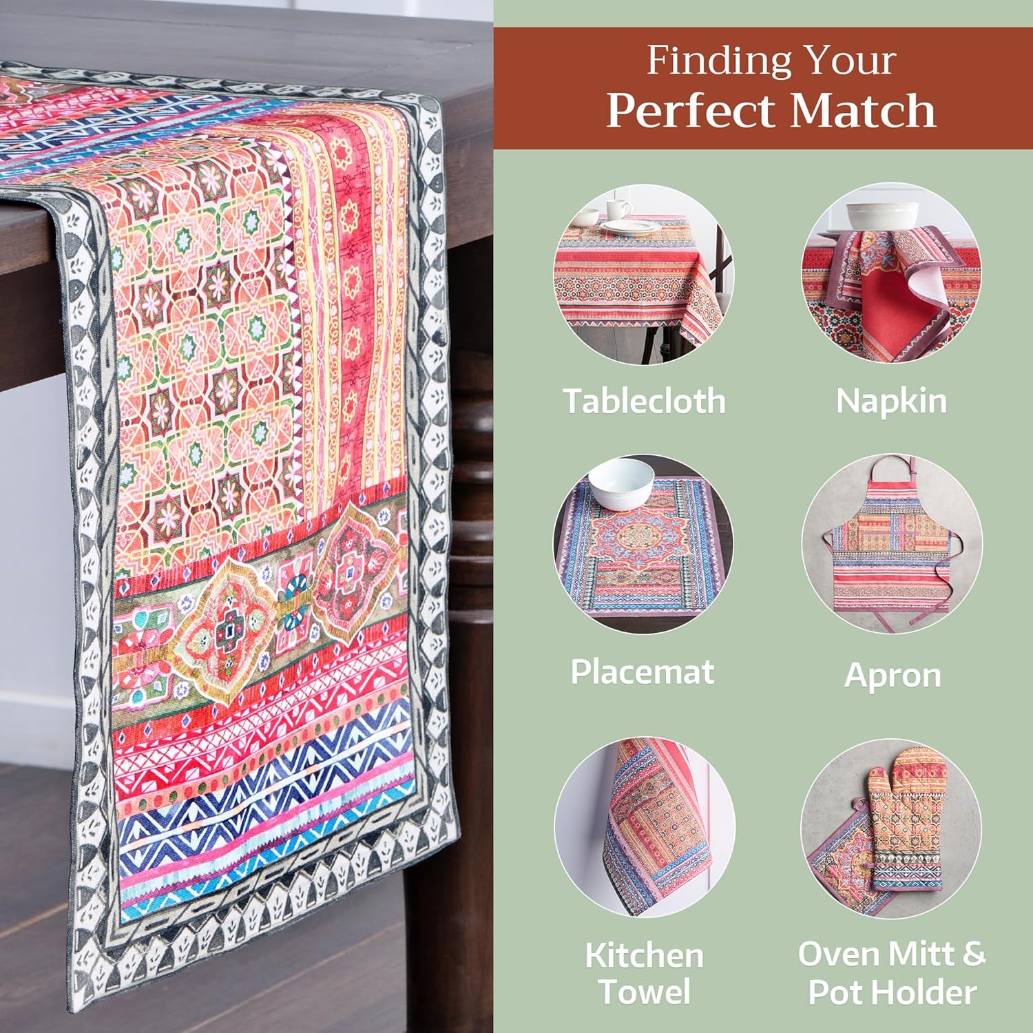 Maison d' Hermine Table Runner 100% Cotton Single Layer Table Runners 72 inches Long for Thanksgiving Christmas Decorations Home Kitchen Dining Party Wedding (Ispahan, 14.5" x 72")