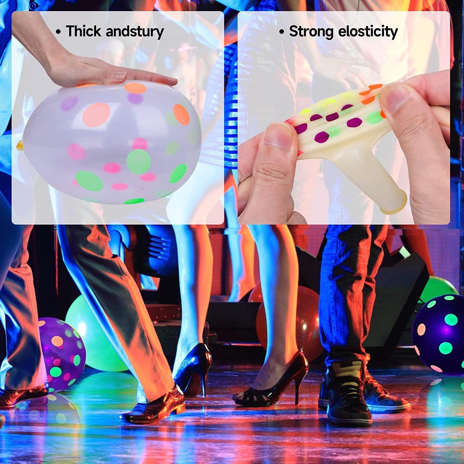 90 Pcs UV Neon Balloons,Neon Polka Dot Glow Party Balloons UV Black Light Balloons Glow in the dark for Birthday Decorations Wedding Glow Party Supplies Blacklight Carnival