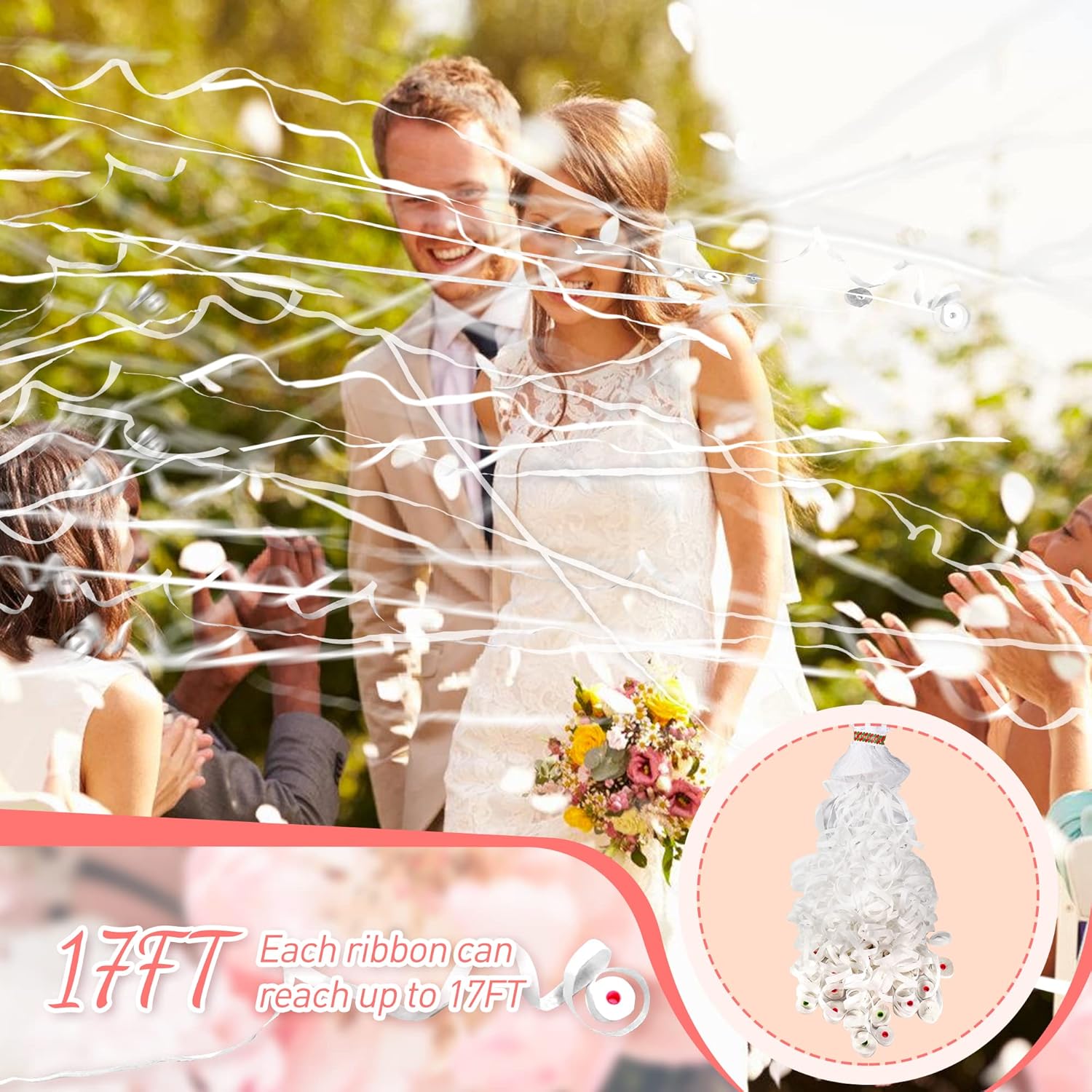 - 24 Pack/30 Ribbons/17 FT:Contains 24 Pack poppers party favors.Each poppers party favors ribbons with a total of 30 thin ribbons,the length can reach 17 FT, invite guests to throw ribbons together!Perfect for creating a wedding outlet