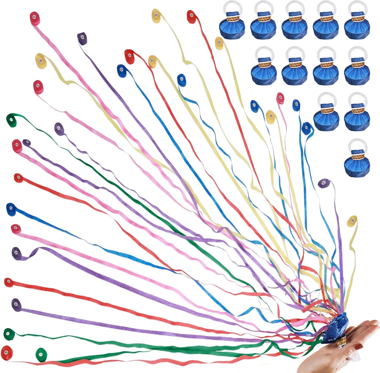 - 12 Pack/30 Ribbons/17 FT: Contains 12 Pack no each party poppers ribbons with a total of 30 thin ribbons, the length can reach 17 FT, invite guests to throw ribbons together! Add a big surprise to your party