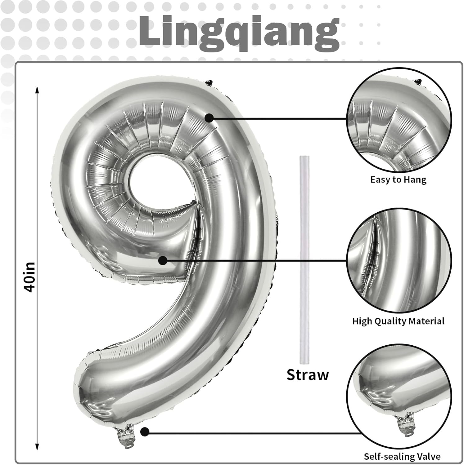 - 🎉 Silver Number 9 Balloon 🎉 - You will get 1pc 40 inch mylar foil number 9 balloon and 1pc straw. Perfect for 9th 19th 90th birthday or anniversary party decorations supplies.
