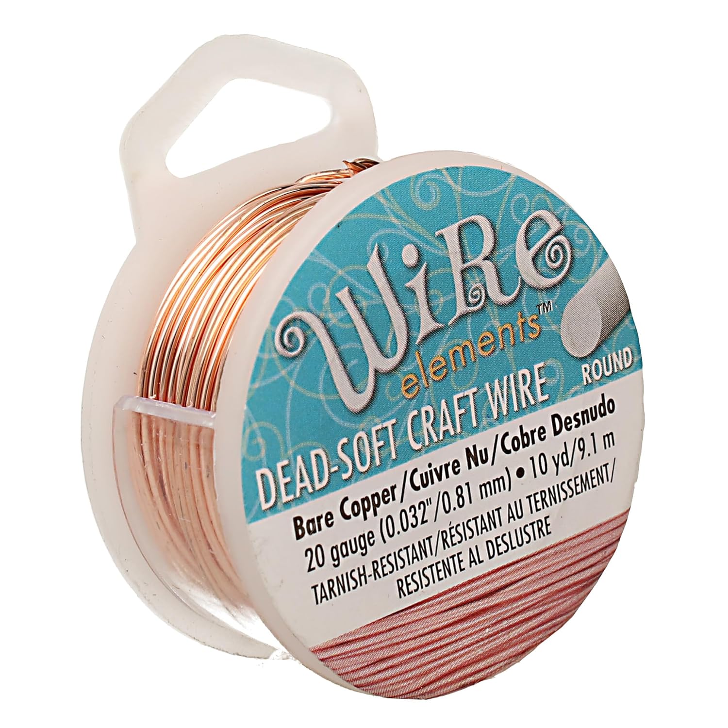 - COILS OF WIRE: This 20-gauge wire comes in a vibrant bare copper color, encased in a tarnish resistant coating, and measures 0.81mm (0.032 inches) in diameter. There is 10 yards of wire on this spool and comes with a clip to protect your wire when it is not in use.