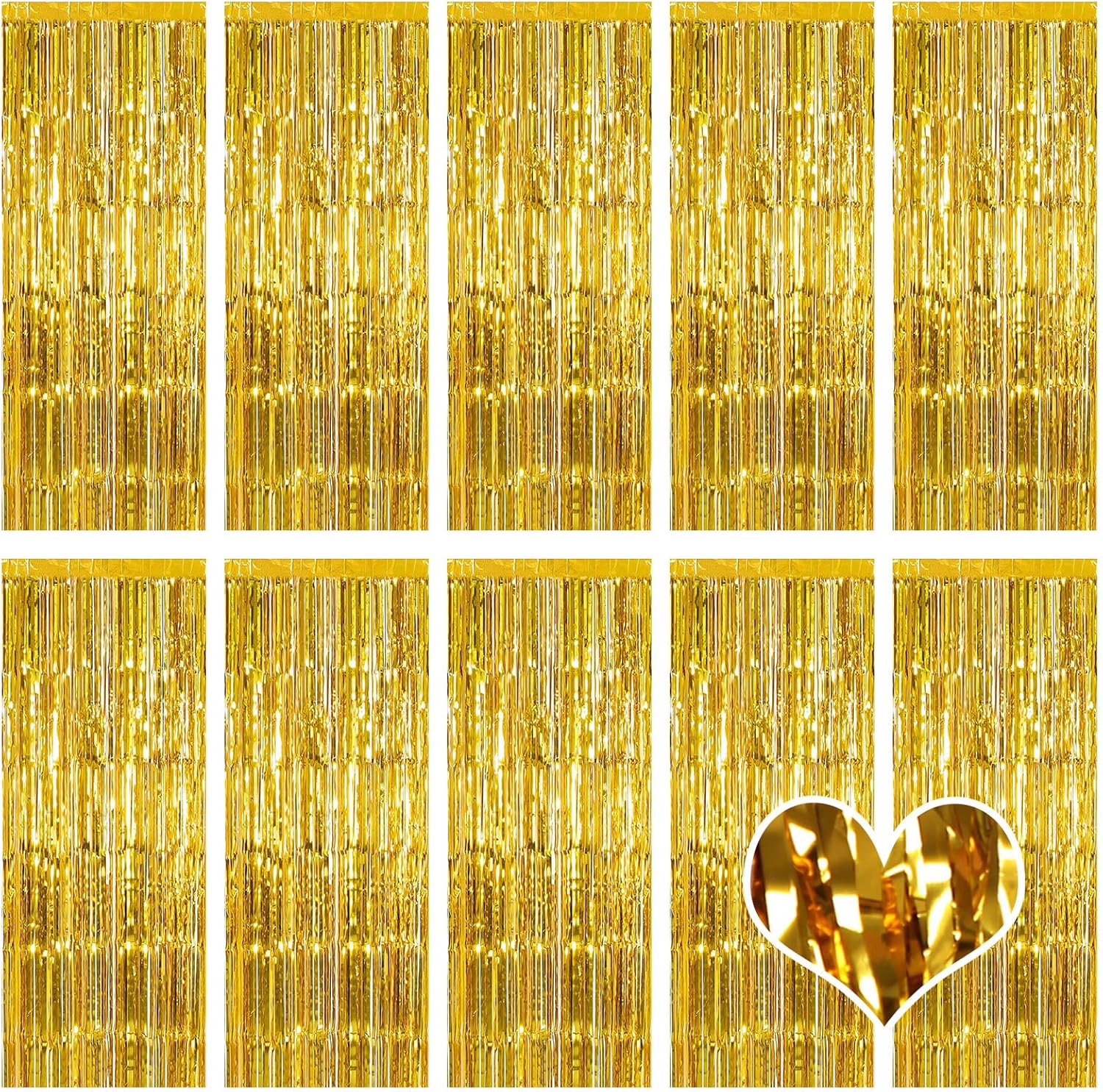 10 Pack Gold Backdrop Curtain 3.2ft x 8.2ft Metallic Tinsel Foil Fringe Curtains Photo Booth Background for Birthday Party Decoration Baby Shower Engagement Wedding Christmas Decoration (Gold)