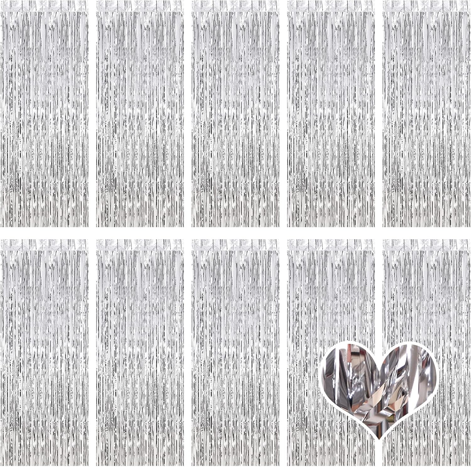 - {Wide Application}: 10 x Foil Fringe Curtains. Our foil curtain backdrop is widely used for stage background, party photo backdrop, window or door frame decoration, etc. The shiny streamer creates a great decorative atmosphere!