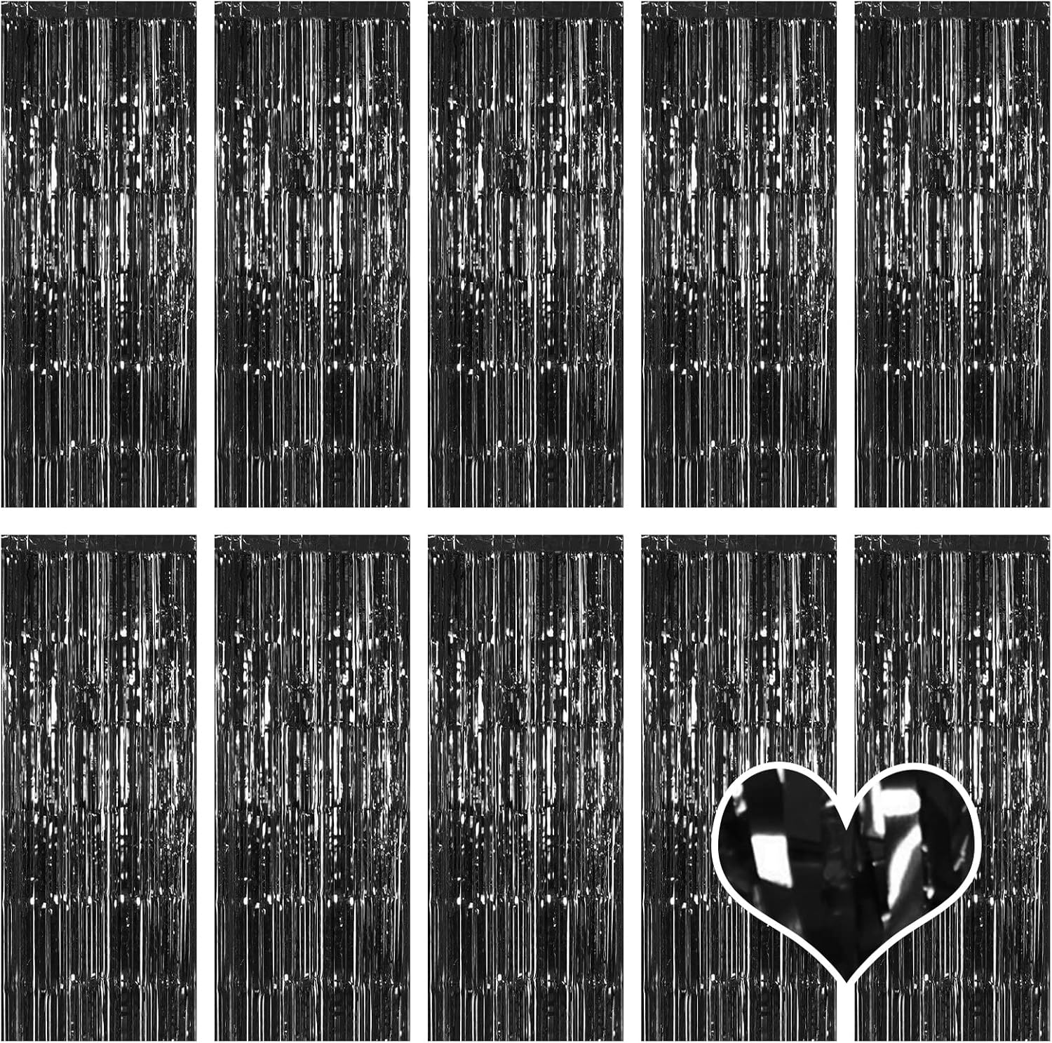 10 Pack Black Backdrop Curtain 3.2ft x 8.2ft Metallic Tinsel Foil Fringe Curtains Photo Booth Background for Birthday Party Decoration Baby Shower Engagement Wedding Christmas Decoration (Black)