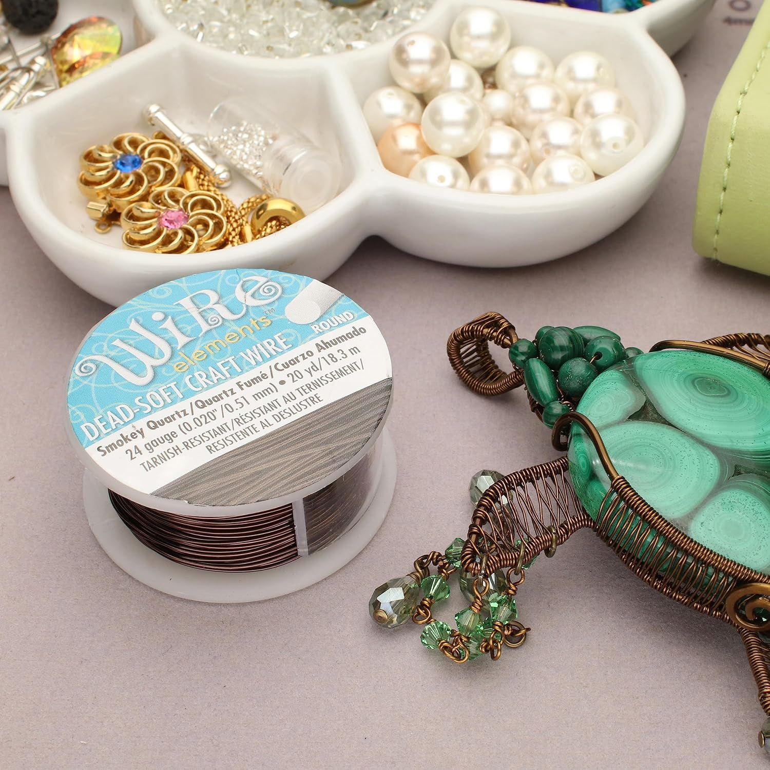 - COILS OF WIRE: This 24-gauge wire comes in a vibrant smoke quartz color, encased in a tarnish resistant coating, and measures 0.51mm (0.020 inches) in diameter. There is 20 yards of wire on this spool and comes with a clip to protect your wire when it is not in use.