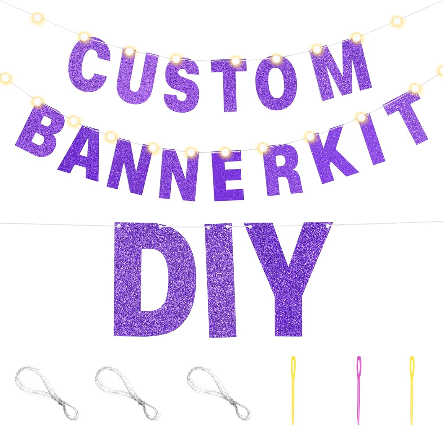 TaoBary 112 Pcs DIY Letter Custom Banner Glitter Customizable Banner Kit Including 107 Letters and Numbers 3 Rope for Valentine Birthday Party(Purple)