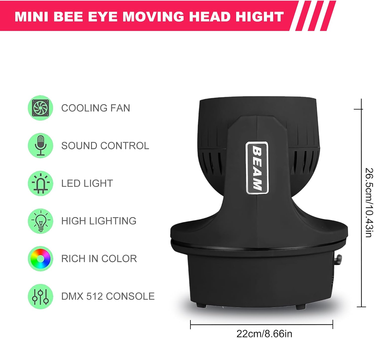 - 🎶【APPLICATION】The mini bee eye moving head lights are great for Wedding, DJ, Clubs, KTV, Pub, Concert, Bar, Banquet, Birthday, Ceremonies, Family parties, Christmas, Halloween decorations, etc. This DJ lighting could create the best atmosphere you want.