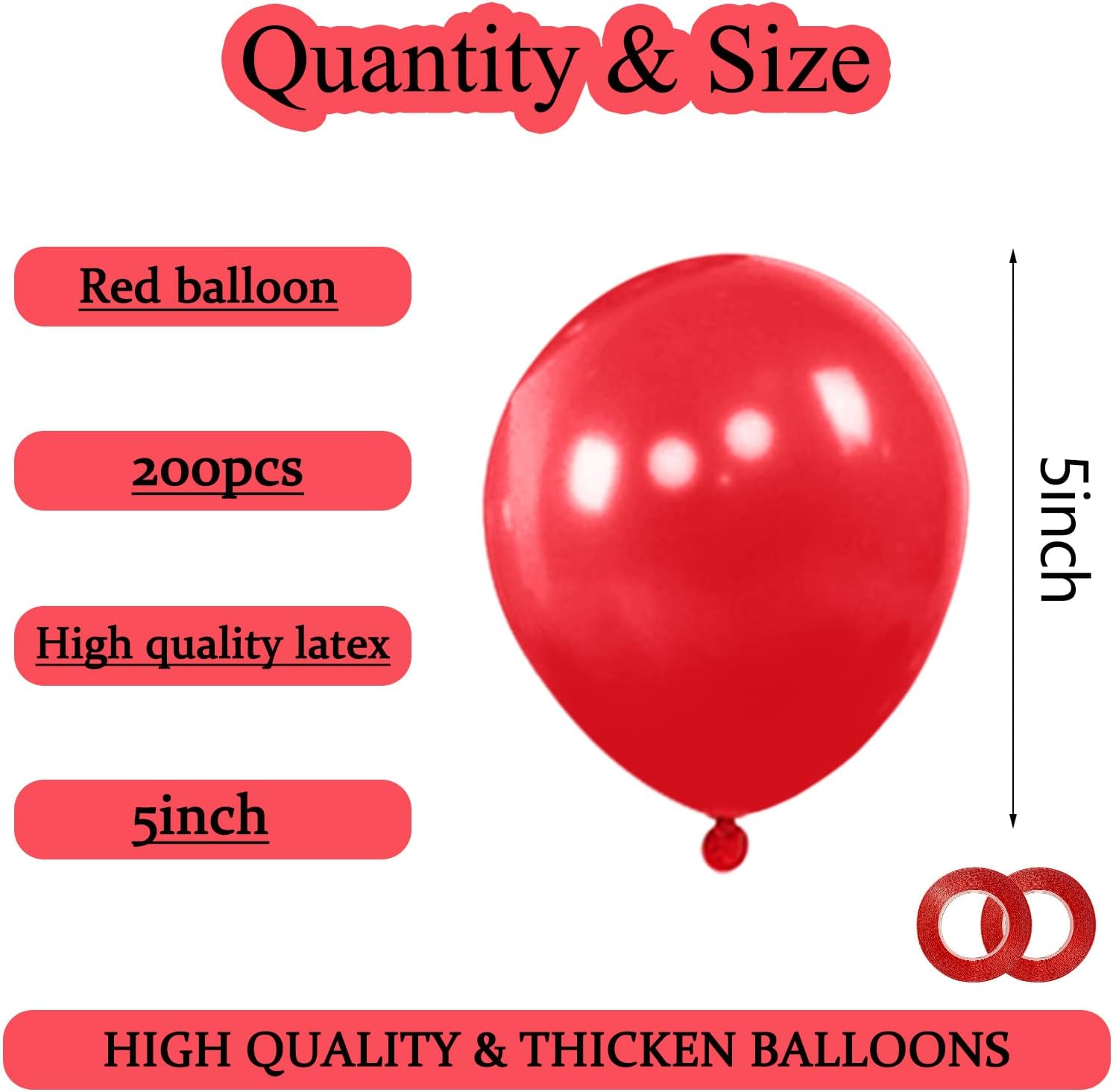 KAWKALSH 200pcs Red Balloons 5 Inch, Small Mini Latex Balloons for Party Birthday Baby Shower Anniversary Festival Arch Garland Decoration