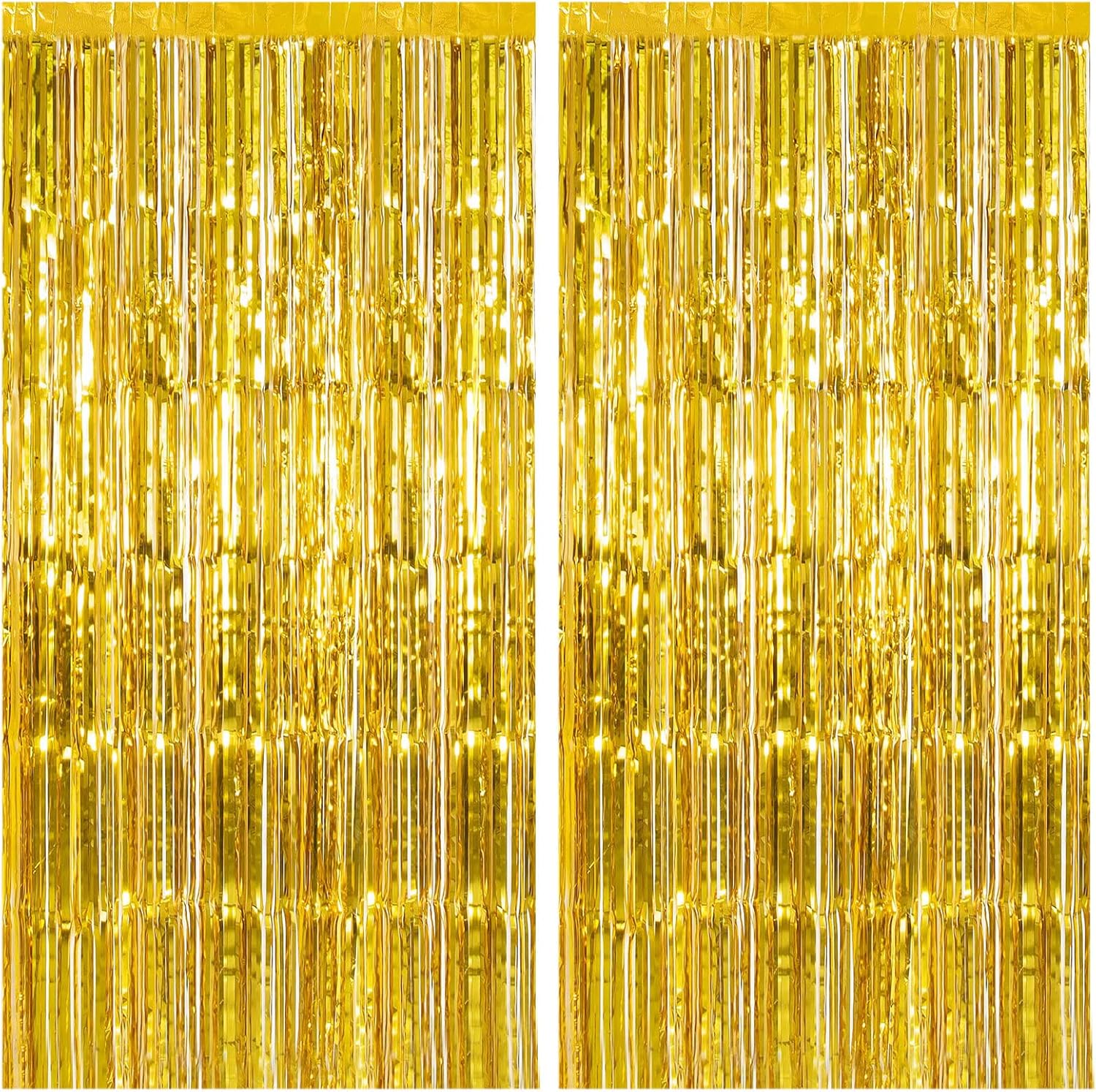 2 Pack Gold Backdrop Birthday Decorations Foil Curtain Backdrop Gold Streamers Dance Party Decorations Photo Booth Props for Bachelorette Decorations Christmas Halloween New Years Eve Party Supplies