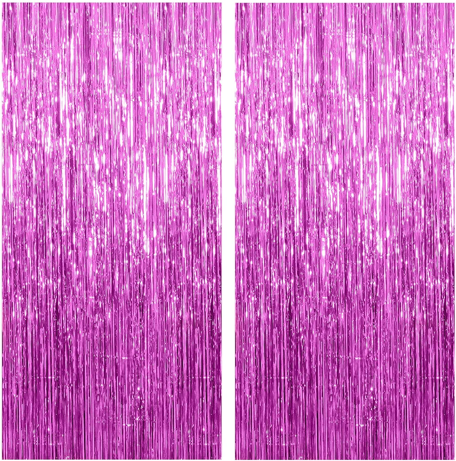 2 Pack Hot Pink Backdrop Curtain Party Streamers Hot Pink Birthday Decorations Foil Fringe Photo Backdrop Party Supplies Fiesta Grad Theme Decorations