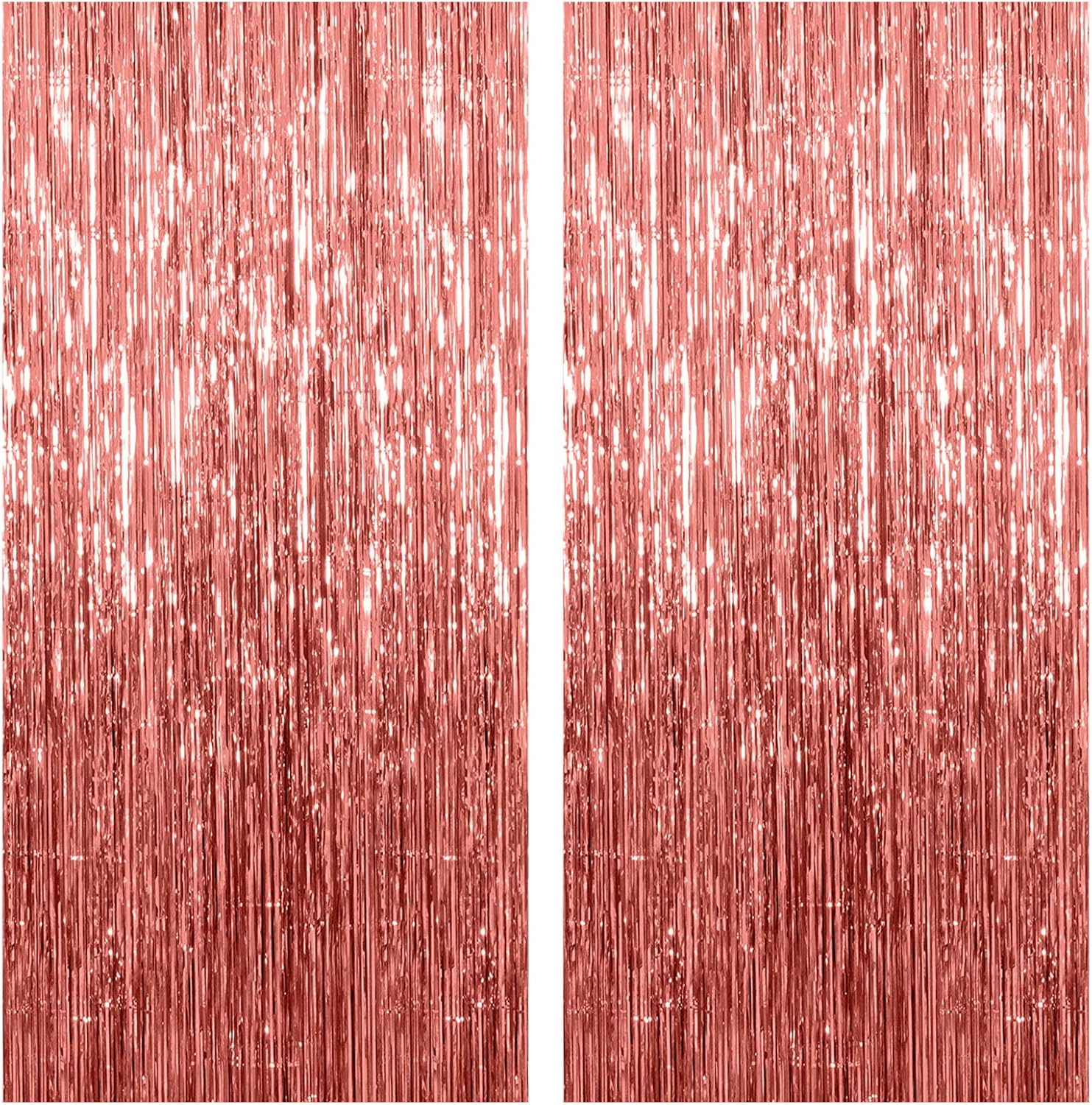 2 Pack Rose Gold Backdrop Birthday Decorations Foil Curtain Bachelorette Party Decor Rose Gold Decor Party Streamers Groovy Birthday Decorations Backdrop