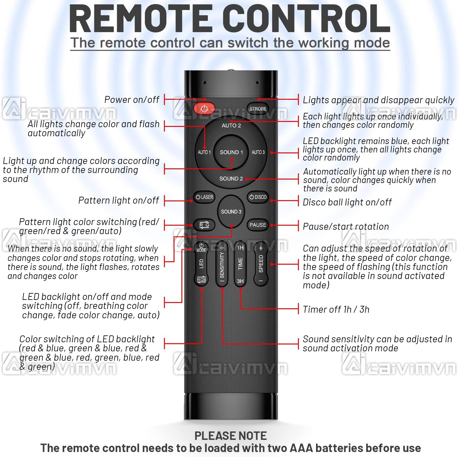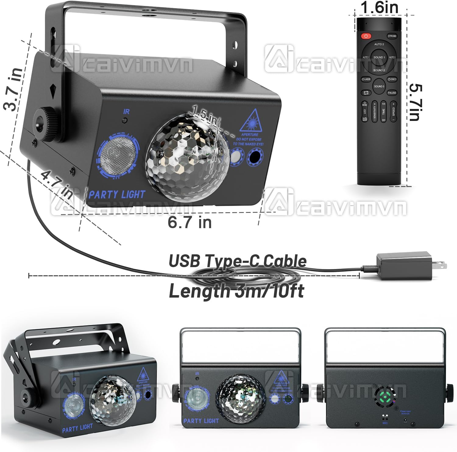 - 📱【New Remote Control】Remote control using 2 AAA type batteries can control on/off of party lights, sound activation sensitivity, 3 auto modes, 3 sound activation modes, motor speed, background light color, pattern light color, strobe on and strobe speed, pause, timer off (1 hour, 3 hours).