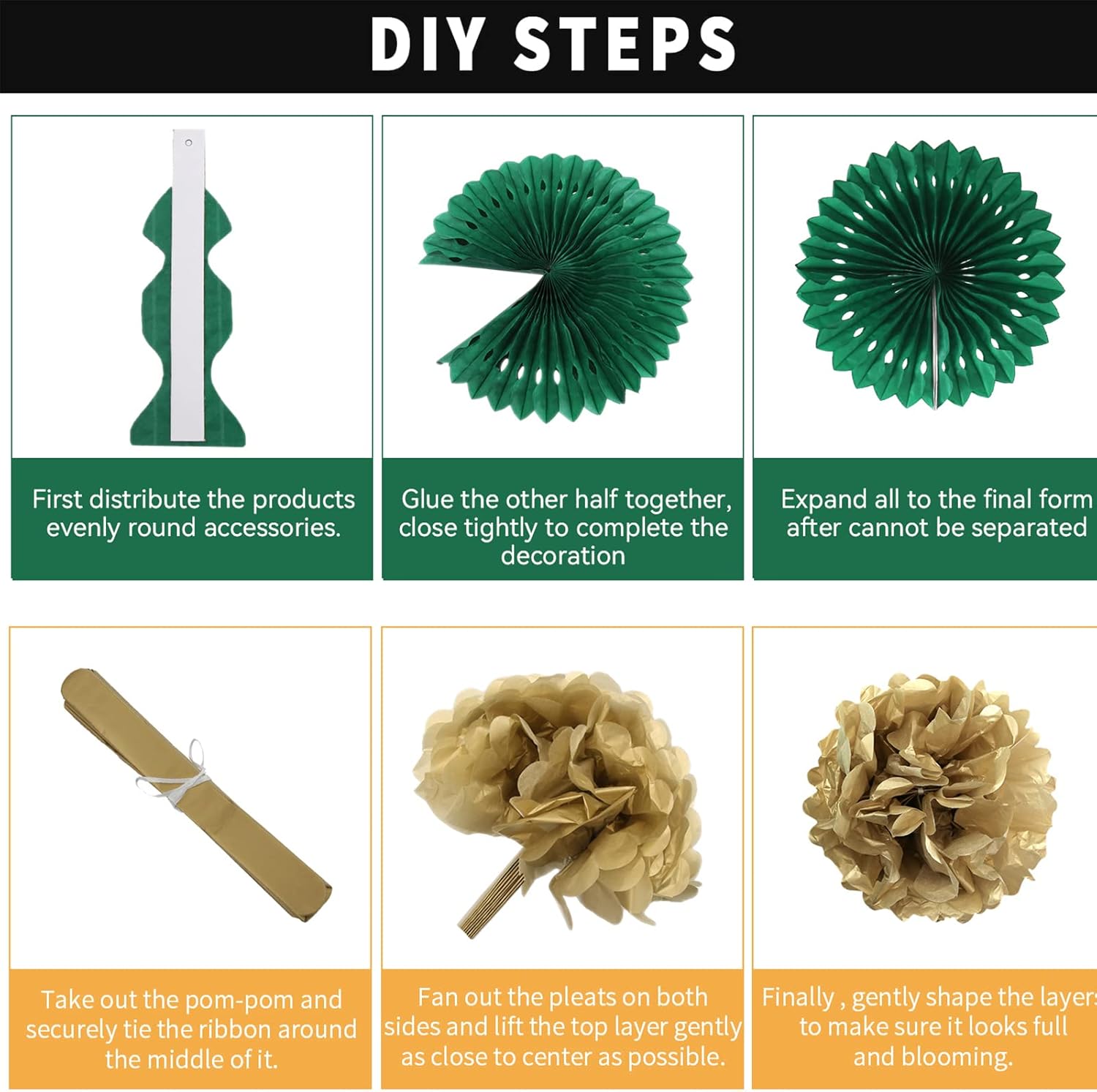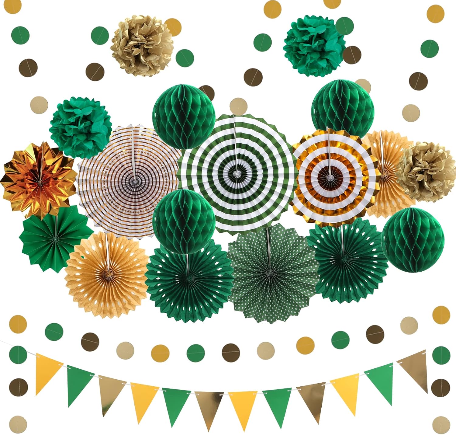 - Green Party Decorations: Our green and gold party decorations for birthday parties is created with the mission to leave everyone with beautiful memories! We can only imagine how amazing set of 23 pcs decoration items can help you light up the beautiful night and make this an unforgettable moment for your kids, yourself, your family, and your friends.