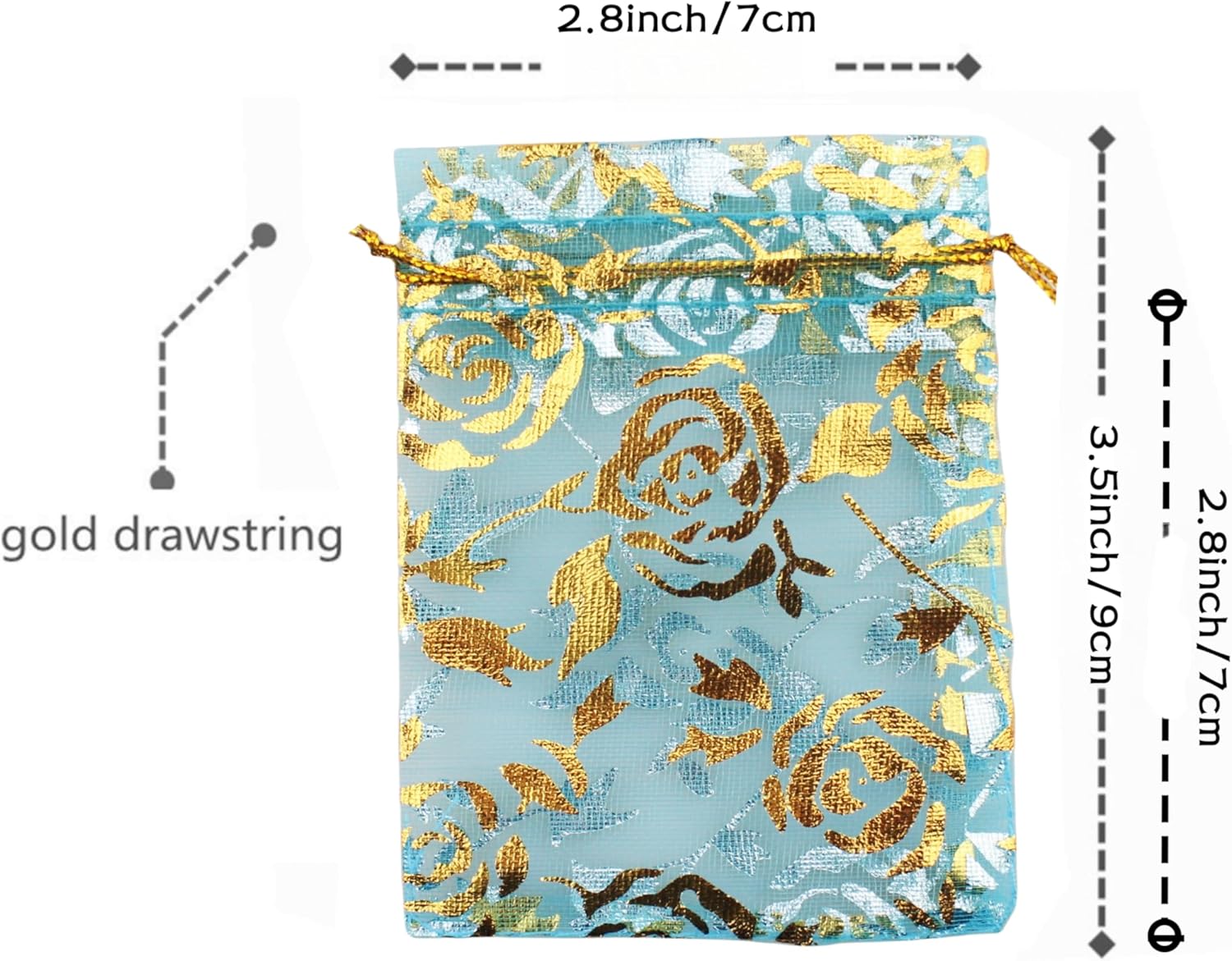- PROPER SIZE&ENOUGHT QUANTITY: 2.8 x 3.5 inches=7 x 9 cm; Hand made and manual measurement with ±0.2’’ error;Package includes 100 pieces of exquisite organza bags; The bags would come with a nice OPP bag for convenient storage.