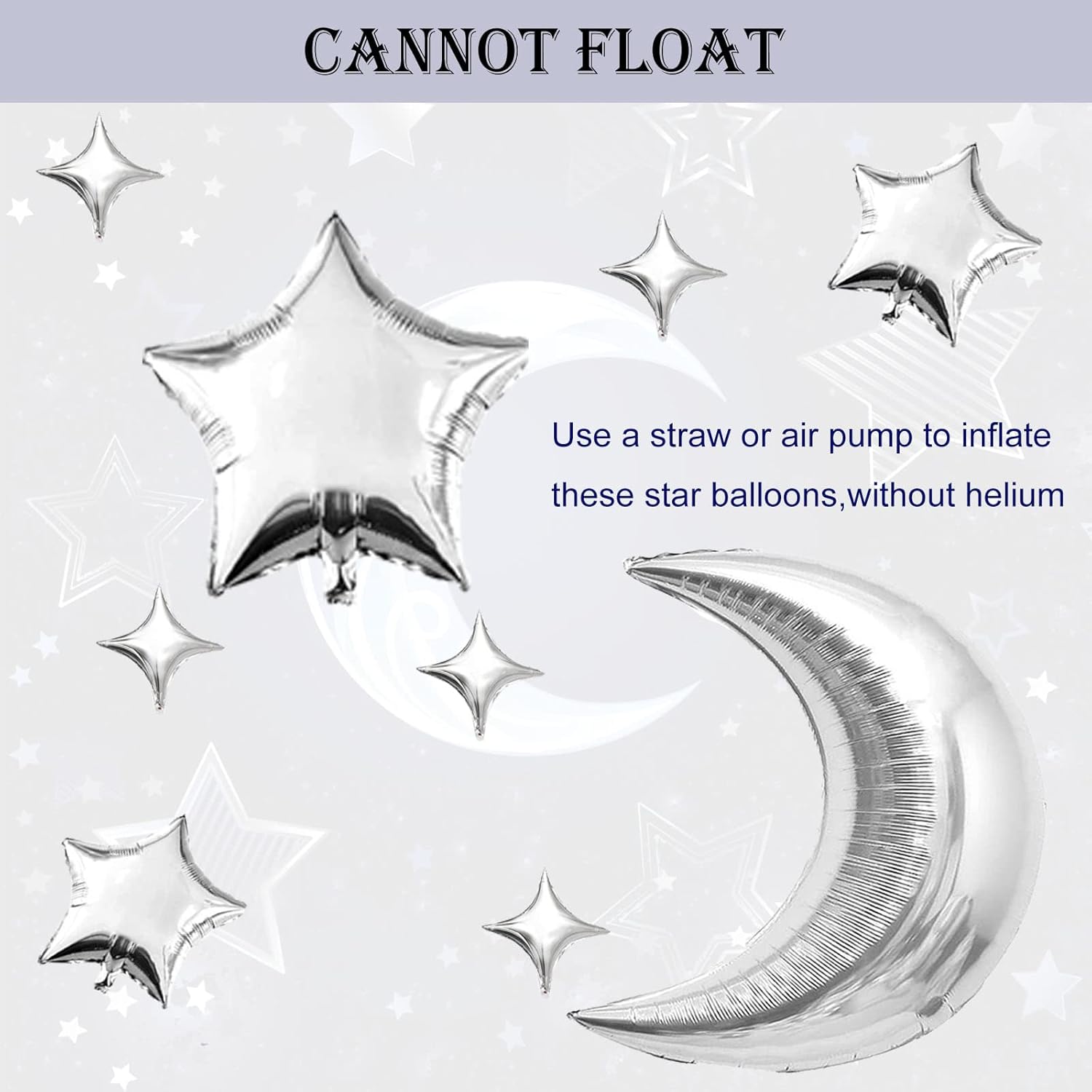 - 【Quality Material】The silver moon and star balloons are made of high quality aluminum foil, which is sturdy and durable, not easy to leak gas or break during inflating. And you can also use a straw inserted into the inflation port to deflate the air or helium for next time to use.