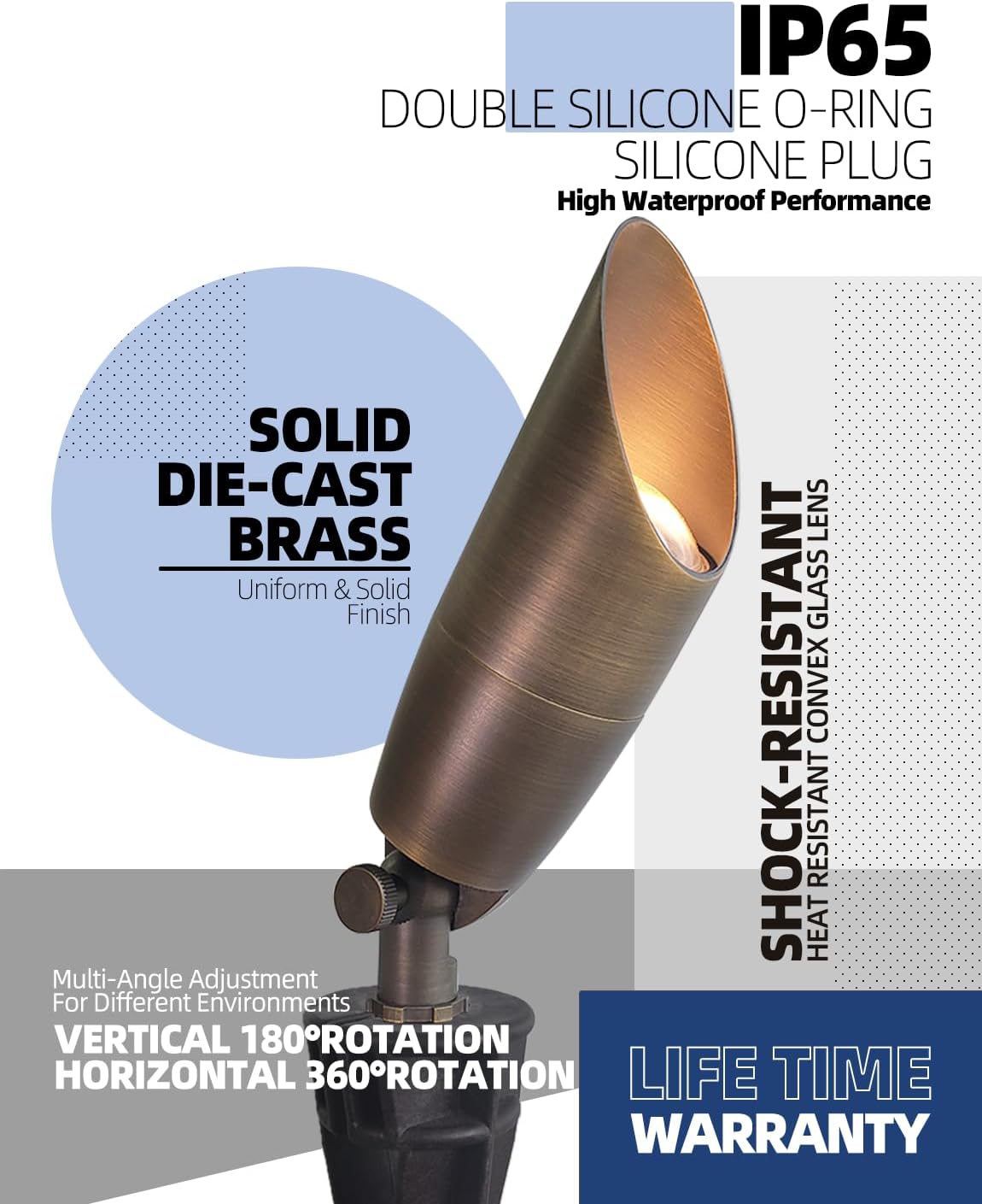 - BRASS LIGHT FIXTURE:MALORY landscape spotlight is constructed of die-cast brass for durability and beauty.Brass spot light doesn't corrode,more durable and reliable than aluminum and plastic fixtures,ideal for any uplighting application.Simple design structure for the light fixture make it looks beautiful yet unobtrusive in any landscape,suitable for decorating most houses and yards.