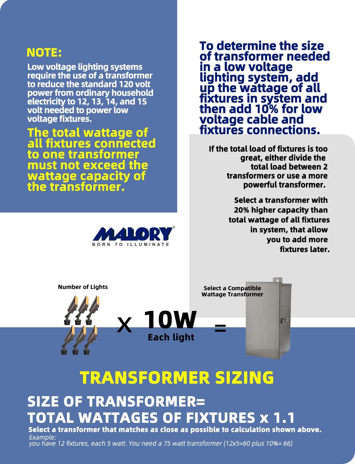 - LIFETIME WARRANTY:MALORY landscape lighting are built to the highest standards of construction and performance, we extends an industry-best lifetime warranty on its brass fixtures and 50,000 hrs for the LED bulbs.Please contact us if you have any issue, we will offer top rated customer service for you.