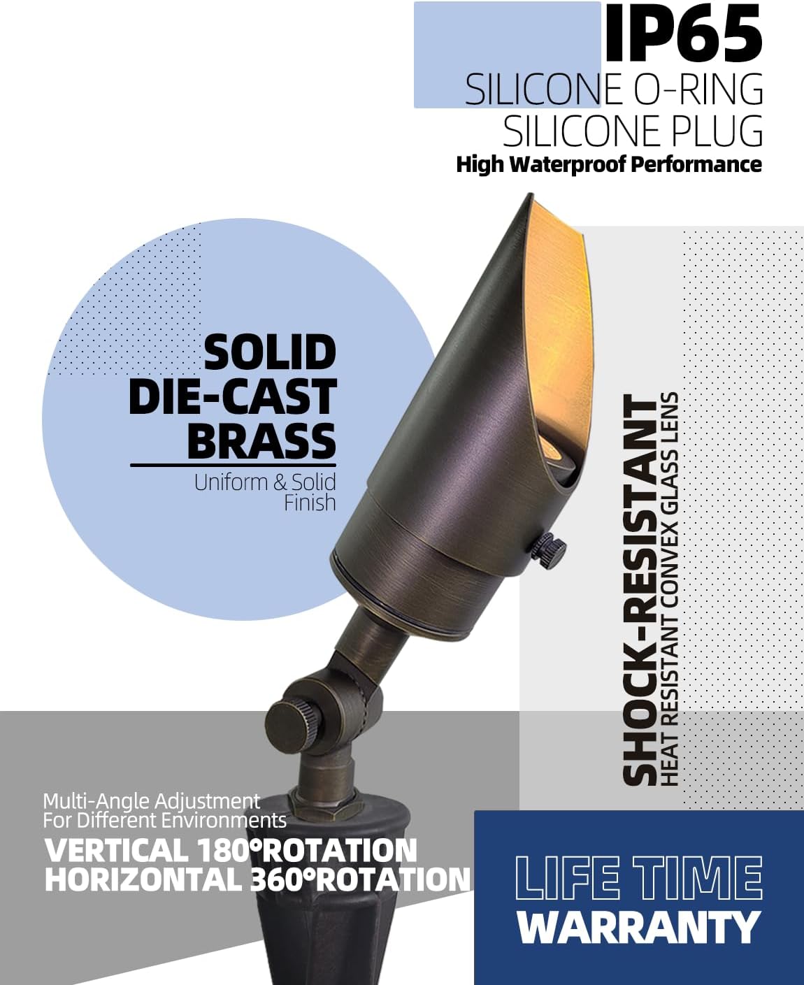 - BRASS LIGHT FIXTURE:MALORY landscape spotlight is constructed of die-cast brass for durability and beauty.Brass spot light doesn't corrode,more durable and reliable than aluminum and plastic fixtures,ideal for any uplighting application.Simple design structure for the light fixture make it looks beautiful yet unobtrusive in any landscape,suitable for decorating most houses and yards.