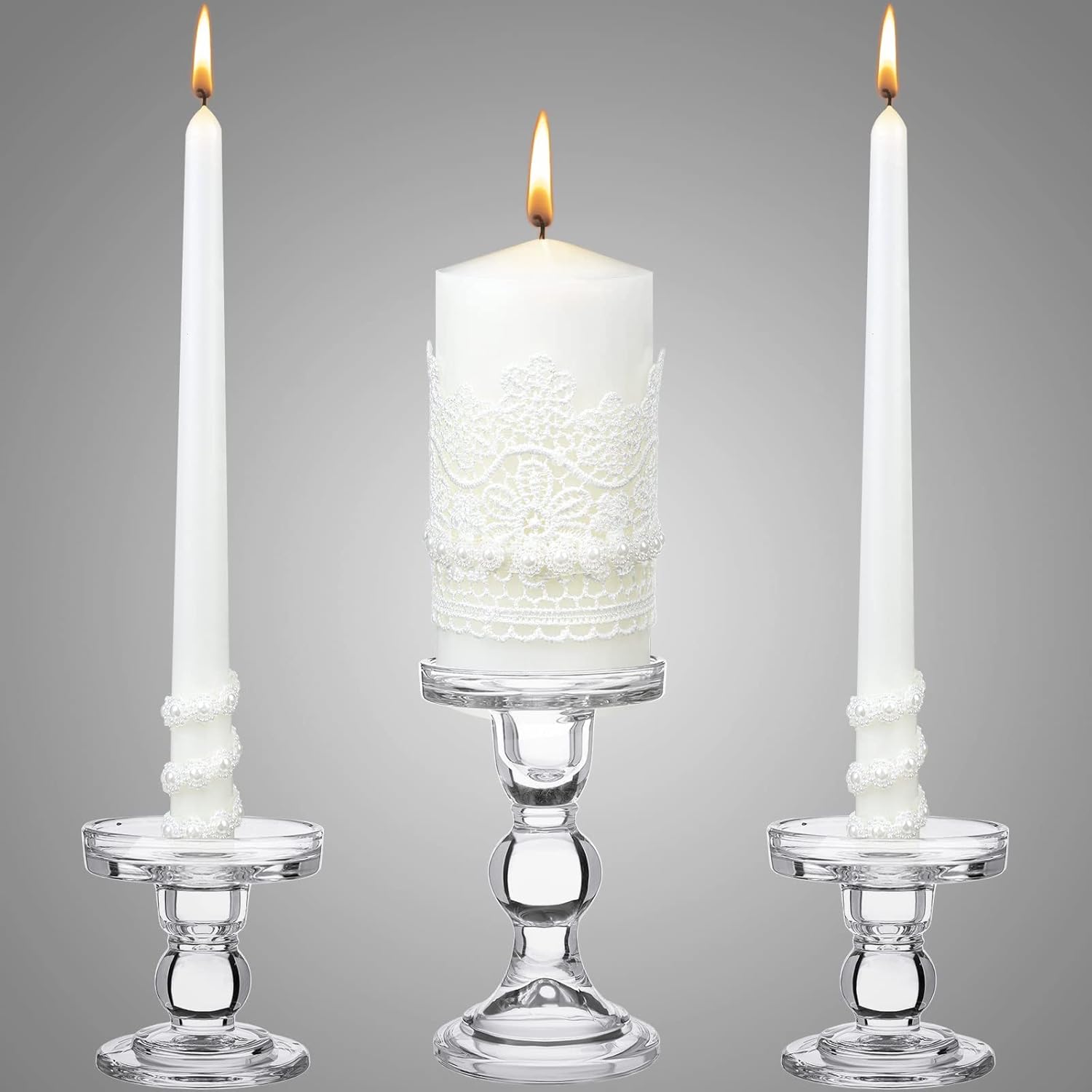 - What You Will Receive: package includes 1 set/ 3 pieces of unity candles and 3 pieces of glass candle holders for pillar candles, which are well matched to decorate the table and party with a romantic atmosphere; They are well packed to ensure a safe arrival