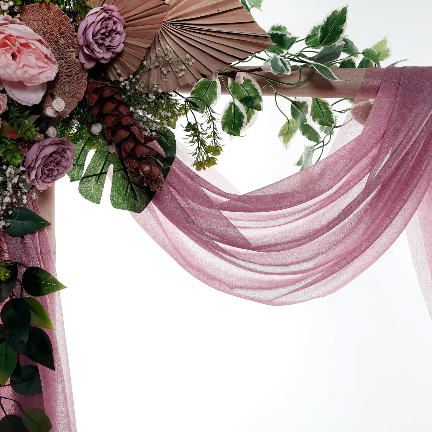 VDS Pack of 1 Panel (30 Inch X 30 Feet) Wedding Arch Draping Fabric Sheer Chiffon Fabric Drapery for Wedding Ceremony Reception Swag Backdrop Canopy Chuppah ARBO Altars Decoration (Mauva)