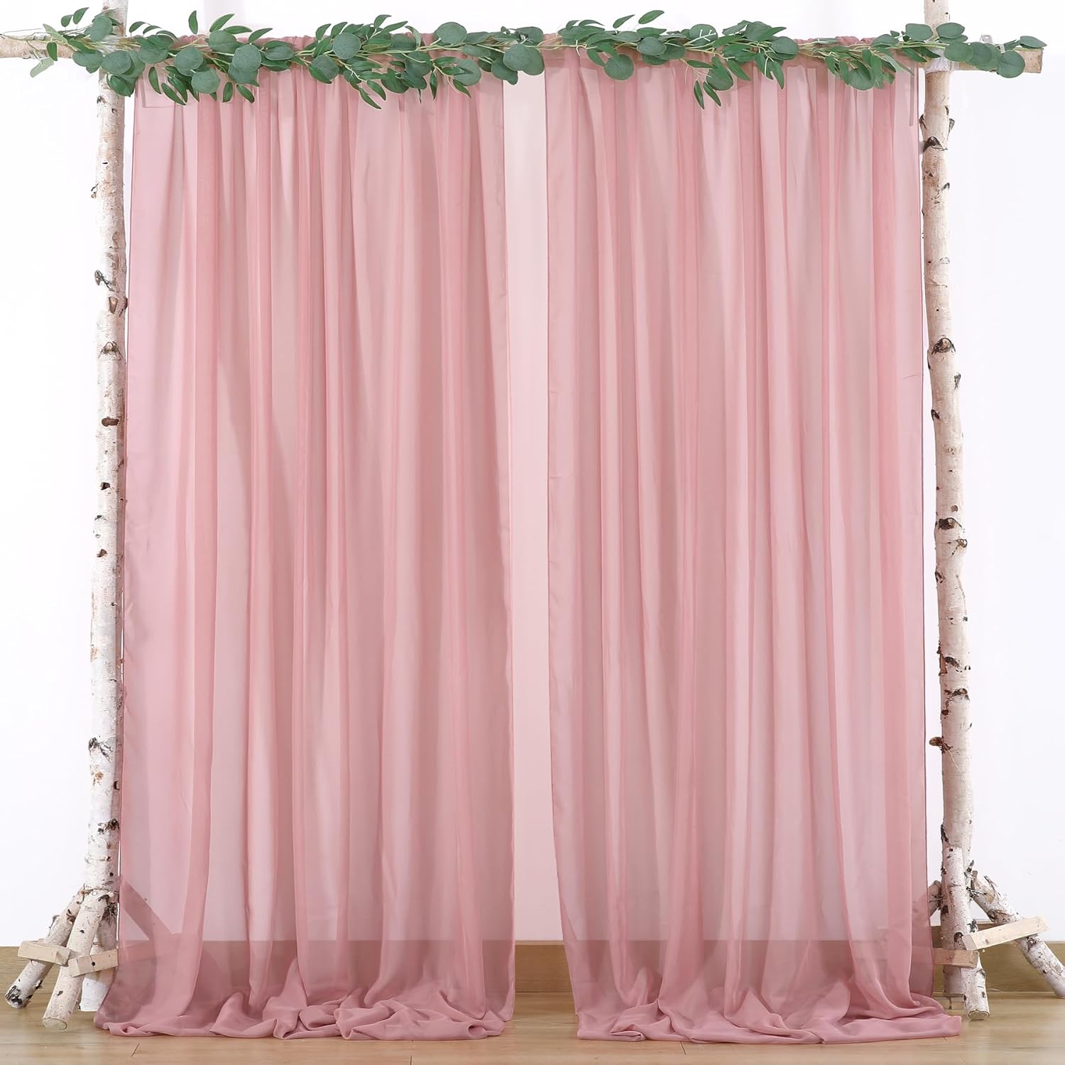 - Wrinkle-Free Fabric: The wedding curtain backdrop is made of 100% sheerness and thickness chiffon fabric, looked simple and elegant, touch silky soft and used sturdy. Chiffon fabric is easy to clean.Dusty Rose chiffon curtains allow seamless integration with any color scheme via decorations