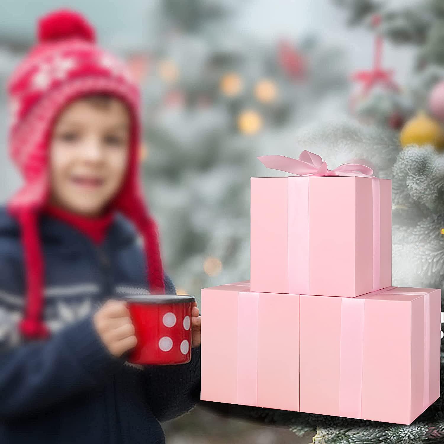 COTOPHER Small Gift Boxes 25 Pack 6x6x6 inches Pink Gift Boxes with Lids for Gifts, Crafting, Wedding Party Favor, Cupcake Boxes, Candy, Bridesmaids Proposal Box with Ribbons and Stickers