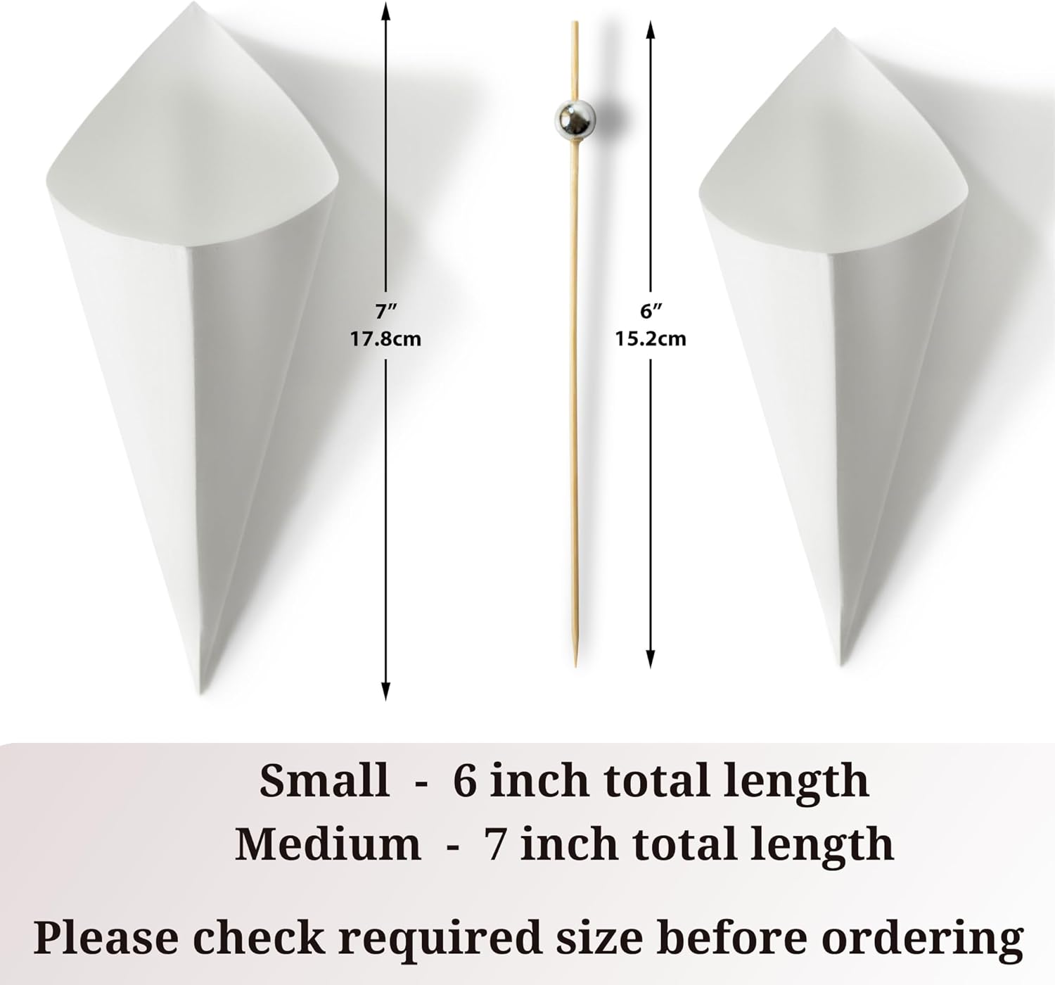 - DELIGHT YOUR GUESTS - Disposable paper cones are great for indoor or outdoor entertaining, buffets, parties, and catered events. White cones contrast well with fillings, allowing them to pop. Our tasting cones allow for perfect portions and do not stick together, unlike many bamboo cones