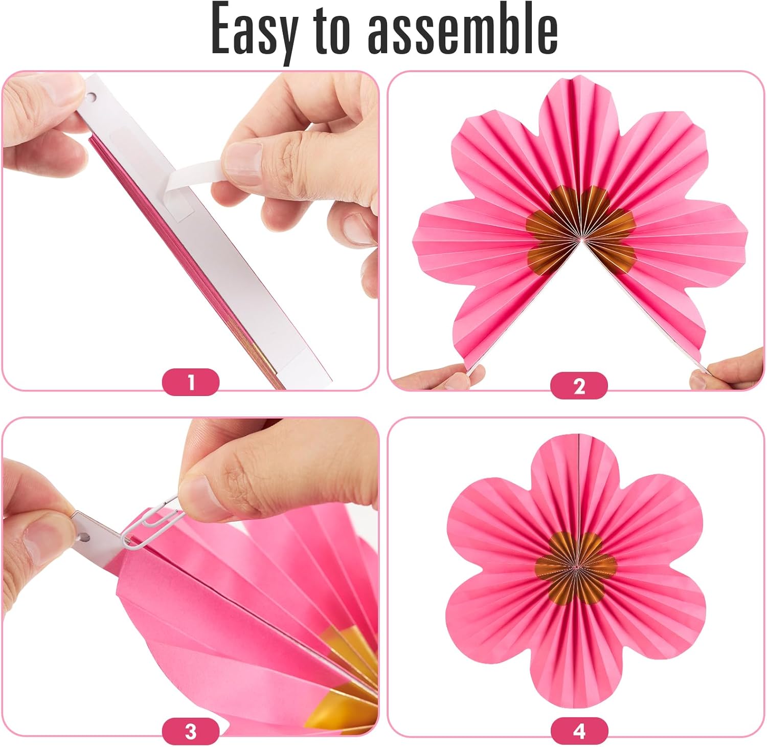- EASY TO ASSEMBLE AND REUSE: You simply unfold each one and secure it with the self-sealing sticker in the fan back, or use free-gift paperclips. The two ways work perfectly. If you use the clip to fasten the fan, it gives you the chance to reuse the fans for future parties.