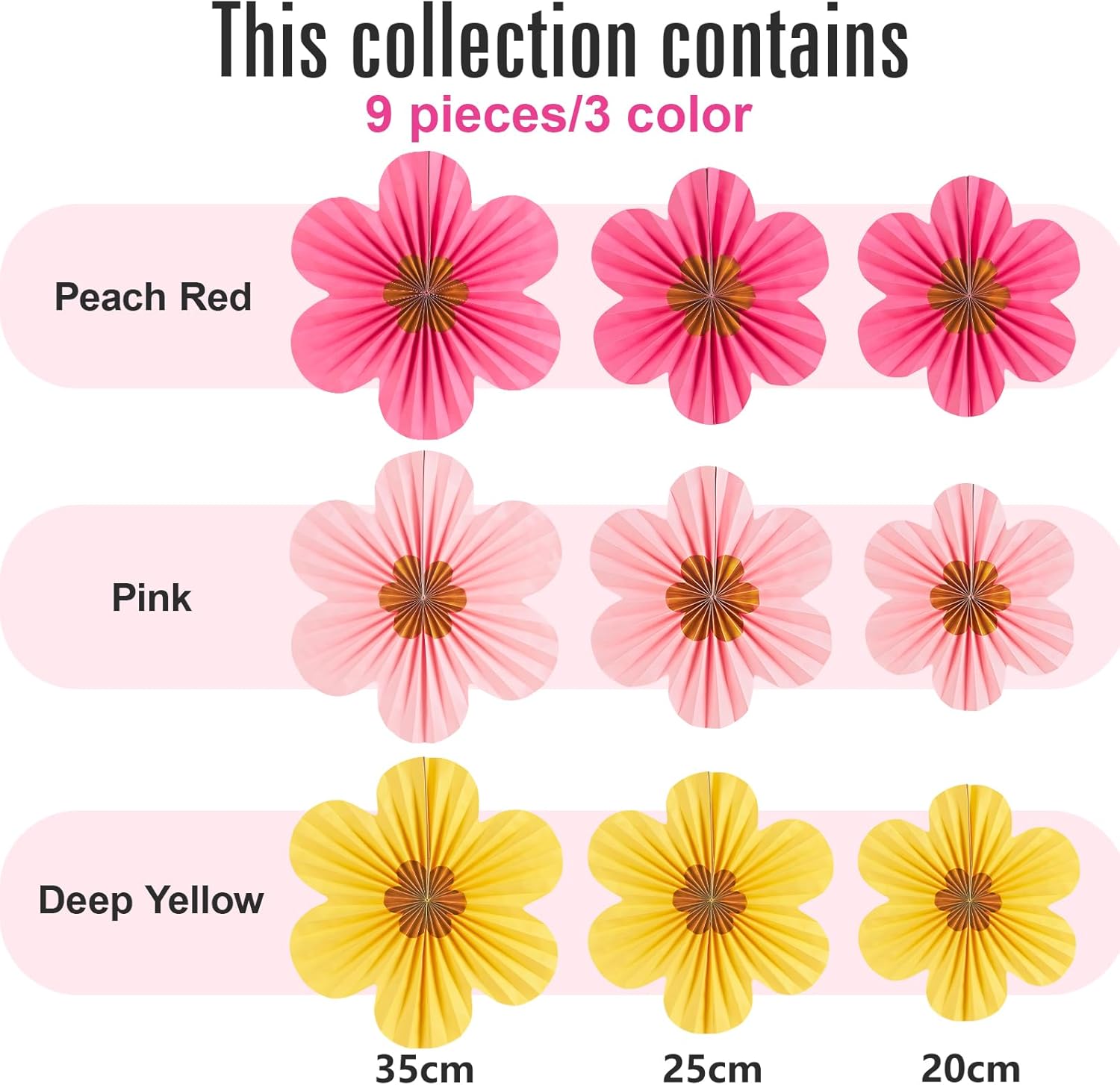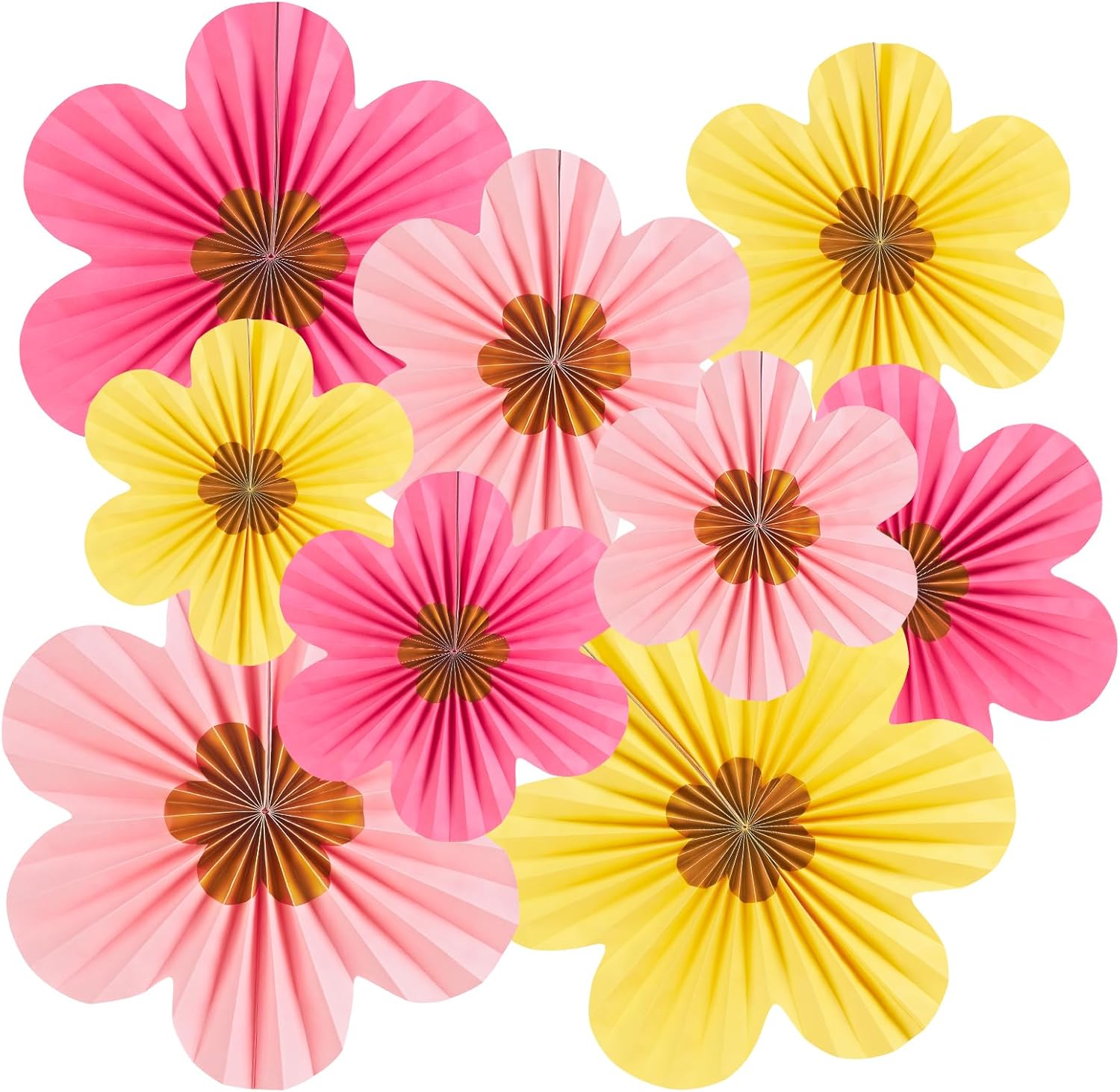 SUNBEAUTY Paper Flowers Decorations for Wall Gold Flower Party Decorations Hanging Fans Floral Backdrop Decor Mothers Day Birthday Wedding Baby Shower Decoration Wall Set of 9