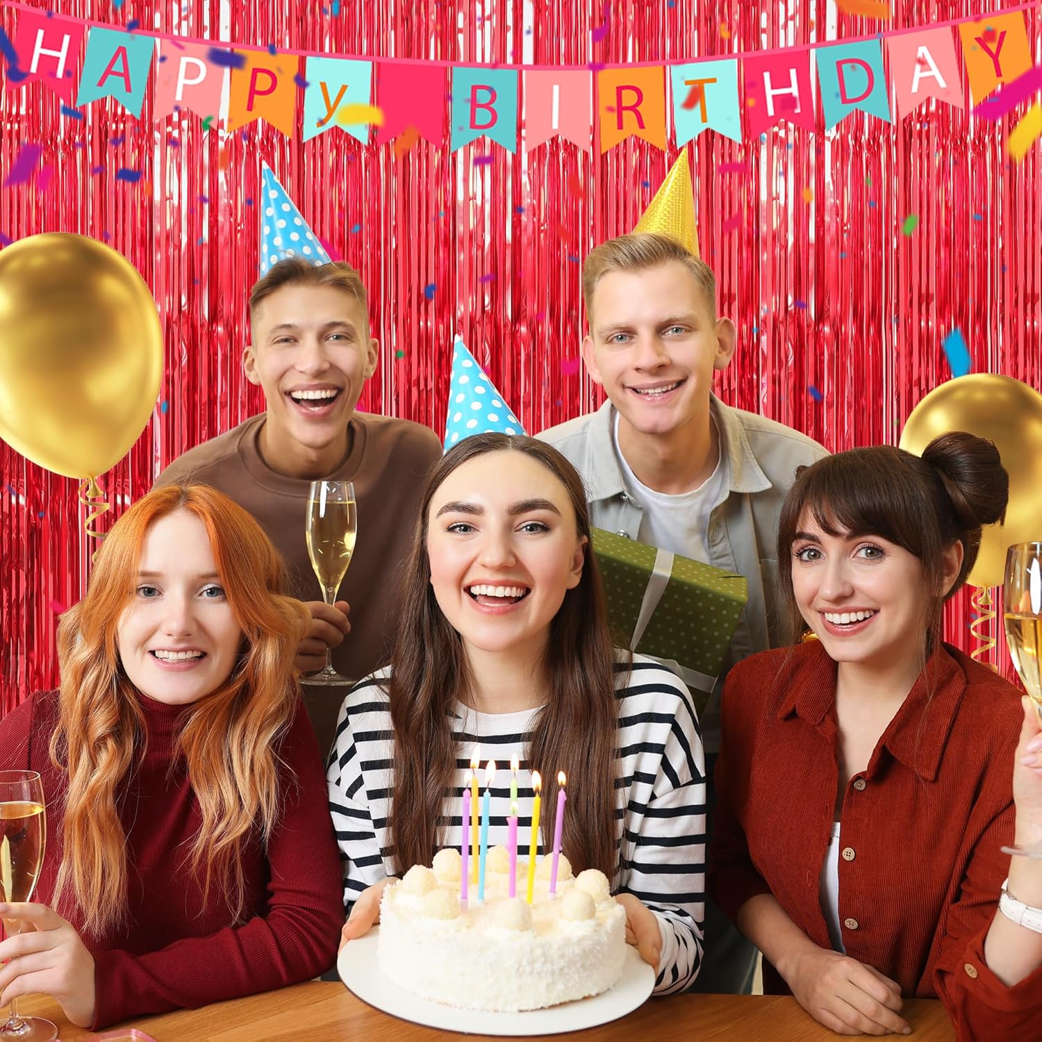 - Safe & Shiny Material - This red tinsel backdrop is made of high-quality shiny tinsel, non-toxic, odorless, and non-fading, safe for families with children and pets. Just transform your home into a shining streamers happy birthday decorations, and enjoy the party.
