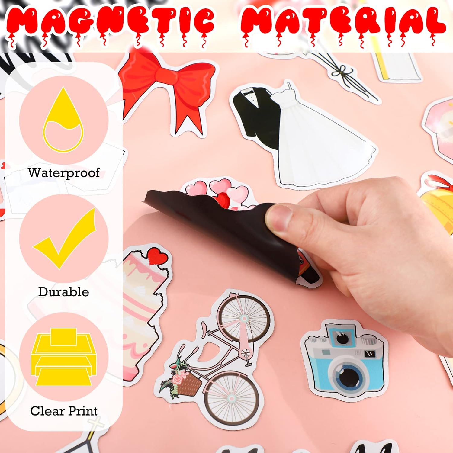 - Adorable Size and Handcraft Sticking: these cute just married fridge magnets have different sizes and can easily attract people's attention; Wedding become more interesting; The cute wedding magnets should be installed by yourself, and you will experience the fun of the wedding during the process of installing, you will feel happy and proud when you finish, and every time you see them, the sense of success will always appear and run in your heart