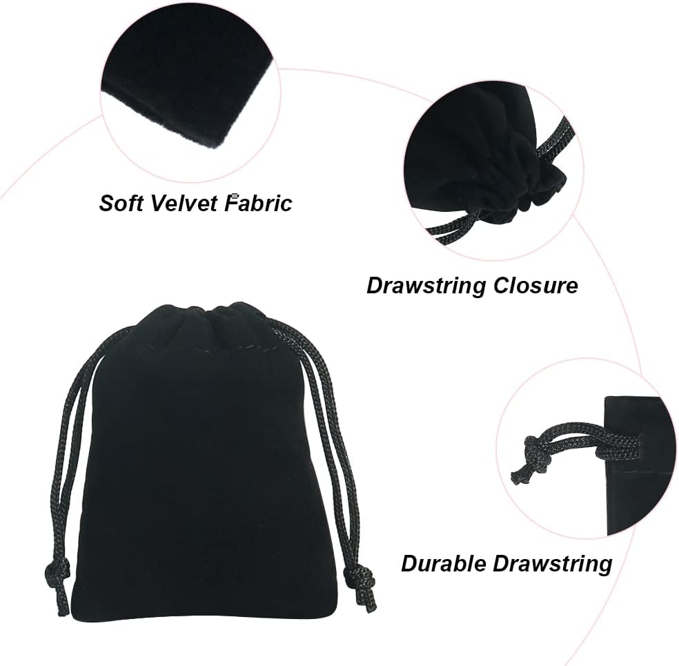 - Little Jewelry Bag - Come with 50pcs 3X4 inch black travel jewelry pouches, the small size take up less room, petite and portable. It is a great substitute for a jewelry box, perfect for holding earrings, rings, necklaces and other jewelry while traveling