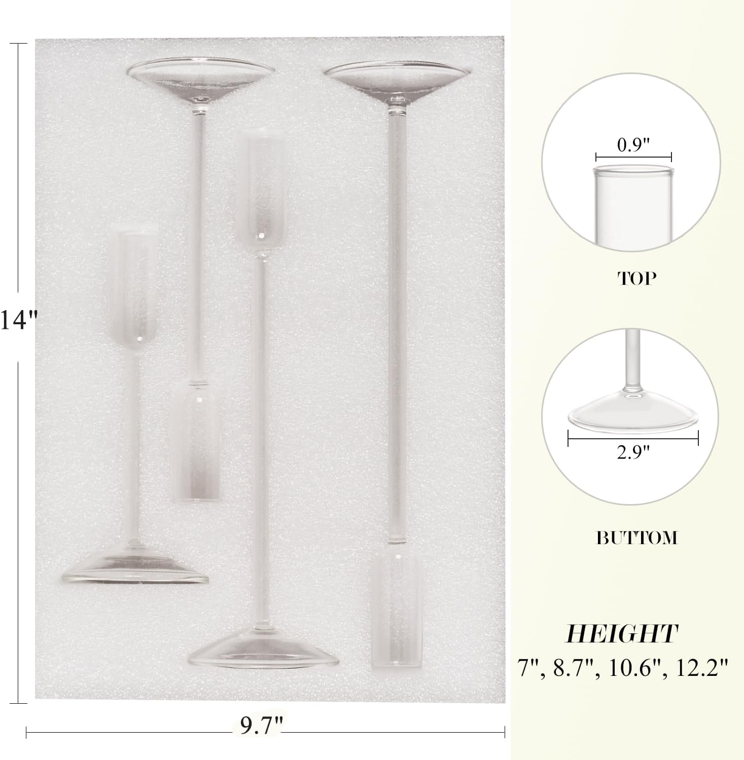 - To enhance the visual effect, we offer 4 different heights: 7", 8.7", 10.6", 12.2". The diameter of candle holder cup is 0.9", suitable for most candlesticks. Each base is thickened to avoid accidentally tip over