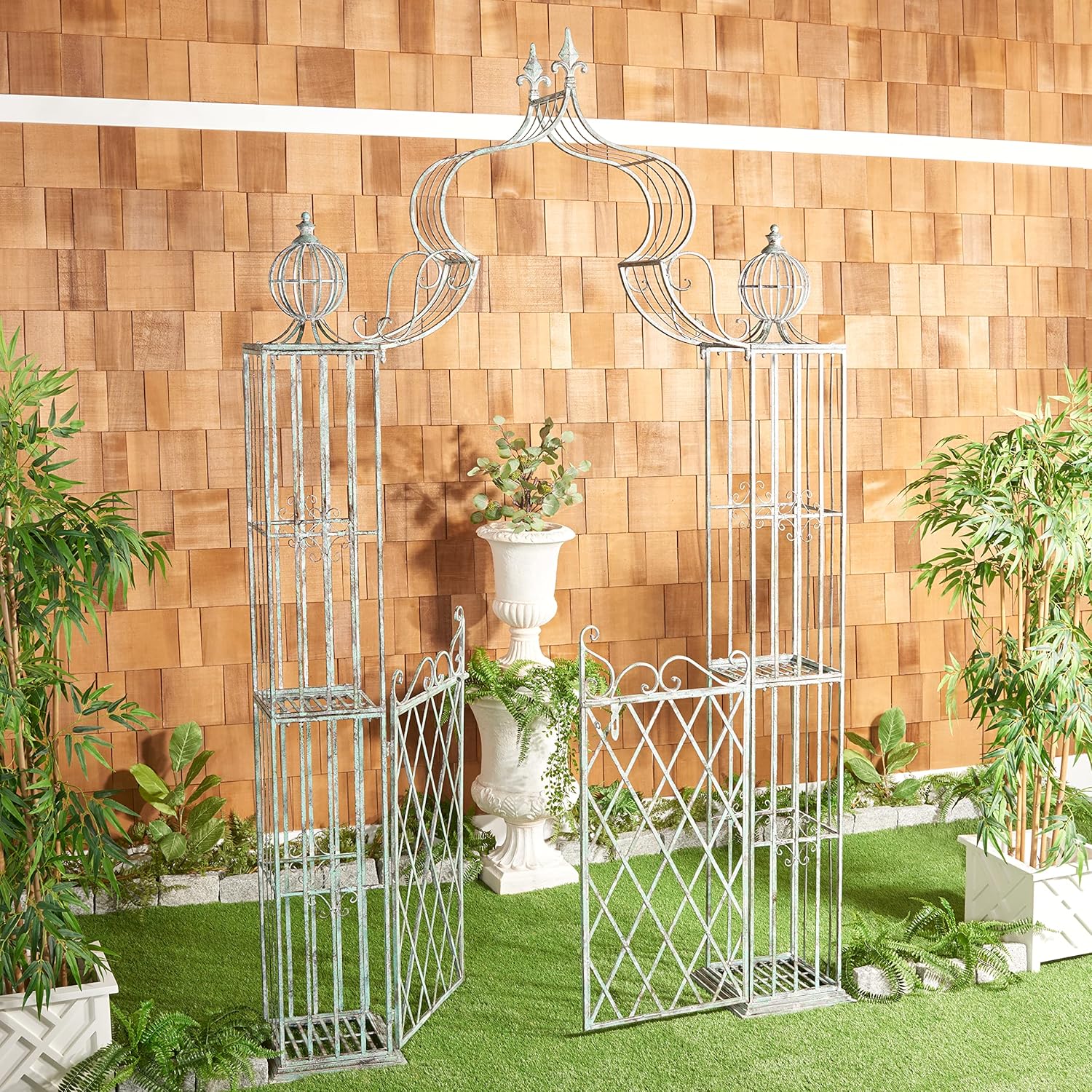 SAFAVIEH Outdoor Collection Beatrix Victorian Antique Dark Green Wrought Iron Trellis Garden Arch Arbor