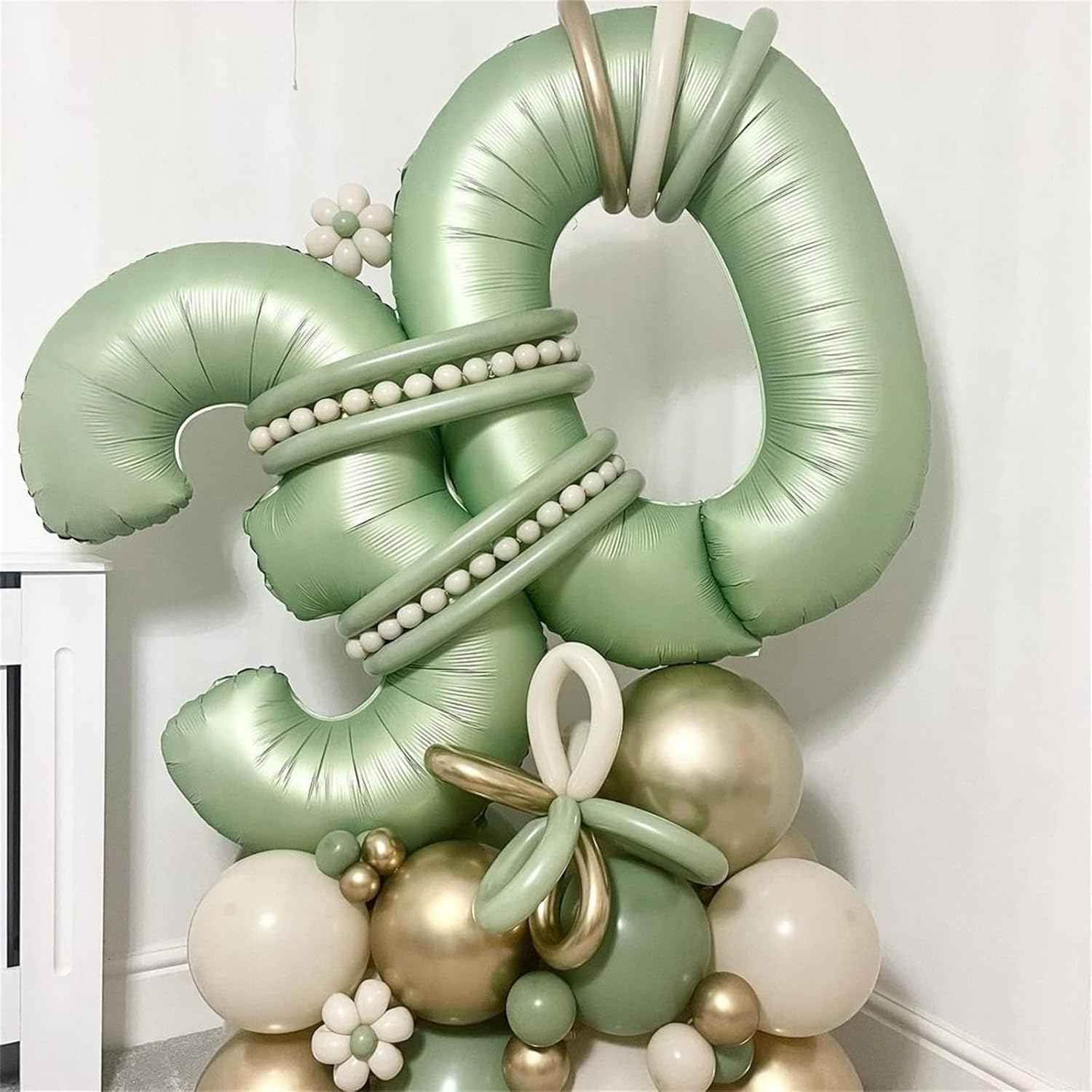 - 🎉 Easy to Inflate 🎉 - The big sage green number 5 foil balloons have self-sealing valve does not need to be knotted for easy inflation and deflation. It can be inflated with air or helium. When filled with helium, the balloons can float in the air; after filling, press the valve of the digital balloon to seal it. It can be reused. Do not throw away after use!