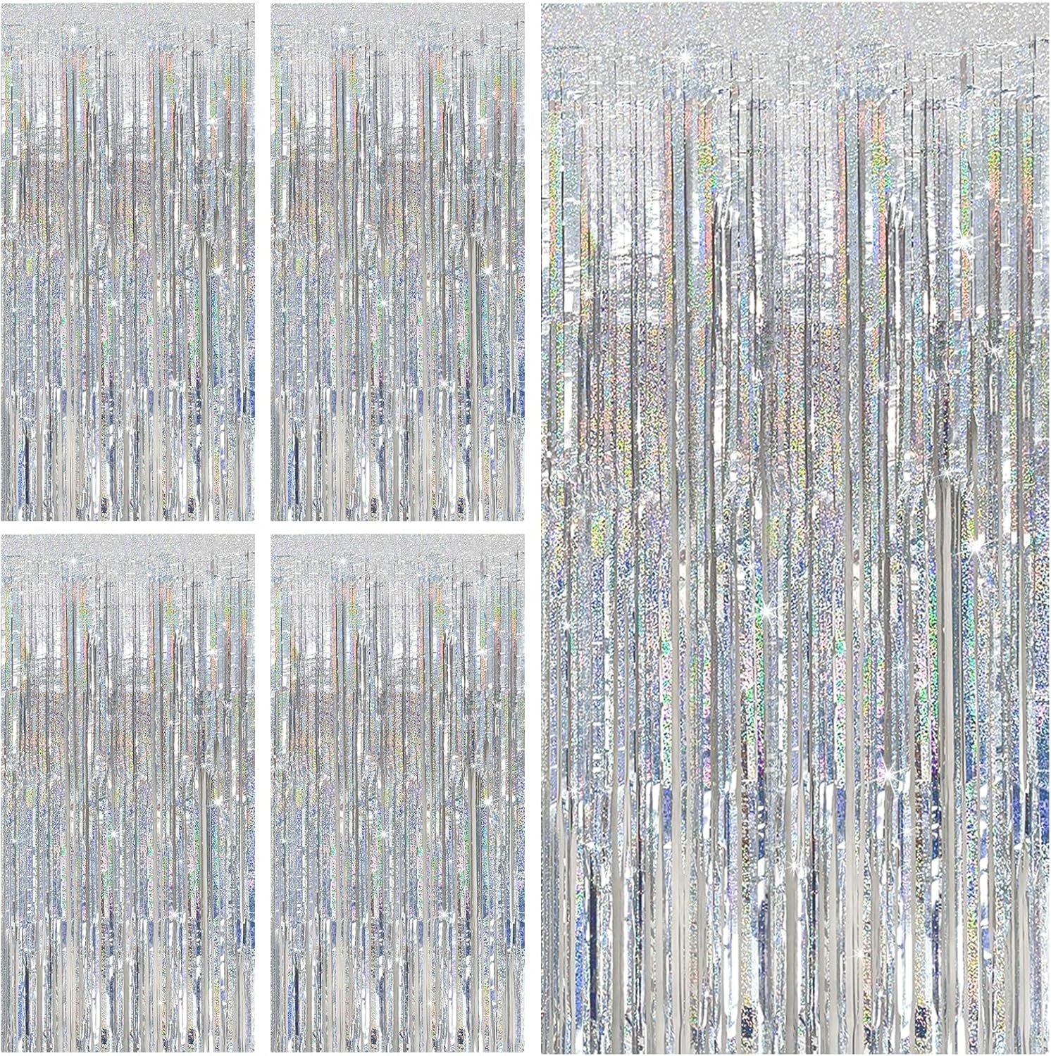 - Tinsel Curtain Party Backdrop: 5Packs/Set, each pack curtains size is 3.28 ft x 6.56 ft, enough length for decorate your party. Perfect accessories for decorating doors and walls to create an impressive decoration for parties, events, and photo booths.