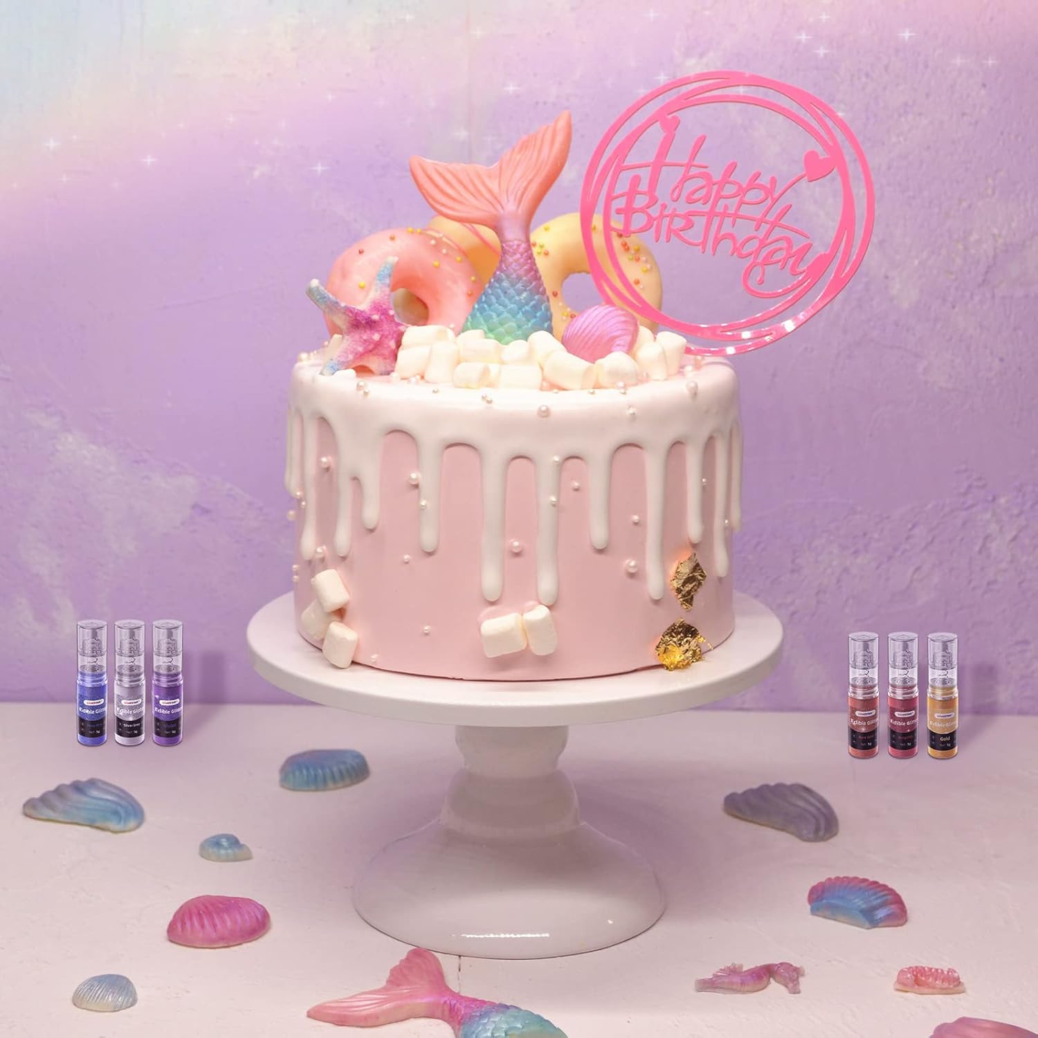 Edible Glitter Spray, Edible Luster Dust, 6 Colors, Edible Glitter for Cocktails, Powder for Cake Decorating, Baking, Drinks, Fondant, Candy, Cookie, Strawberry, 5g/bottle