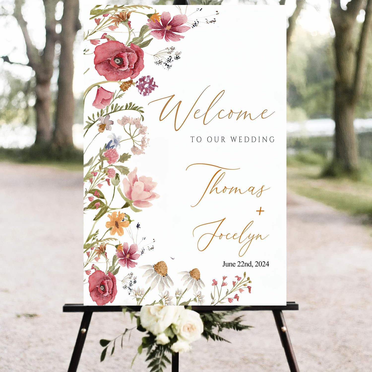 Wildflower Floral Spring Wedding Welcome Signs, Welcome Sign Wedding, Customized Wedding Welcome Sign, Custom Wedding Welcome Sign