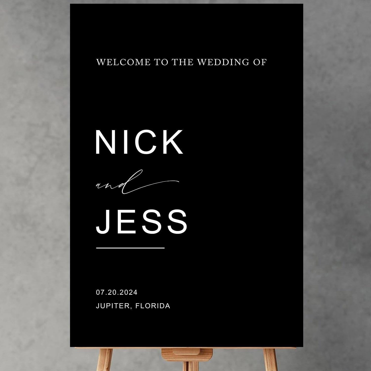 Black Minimalist Script Modern Wedding Welcome Sign, Custom Wedding Welcome Sign