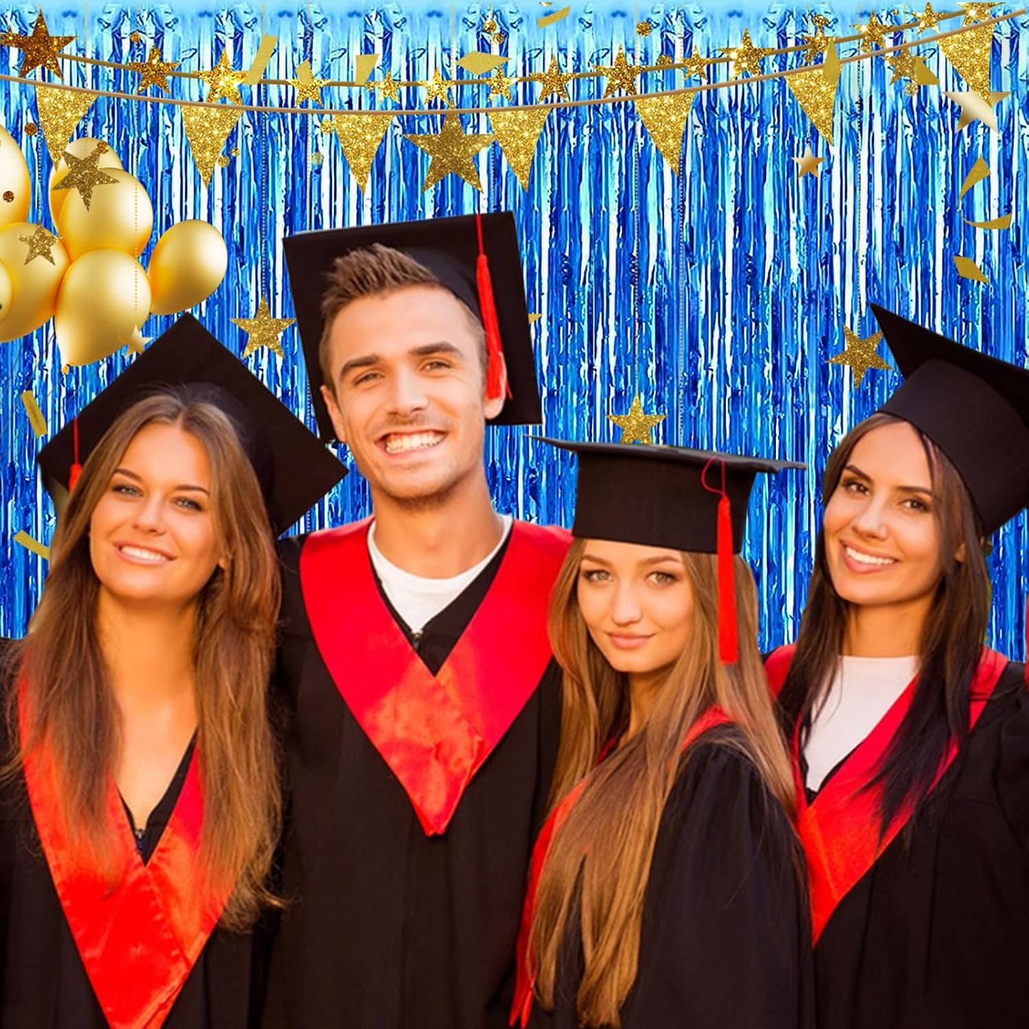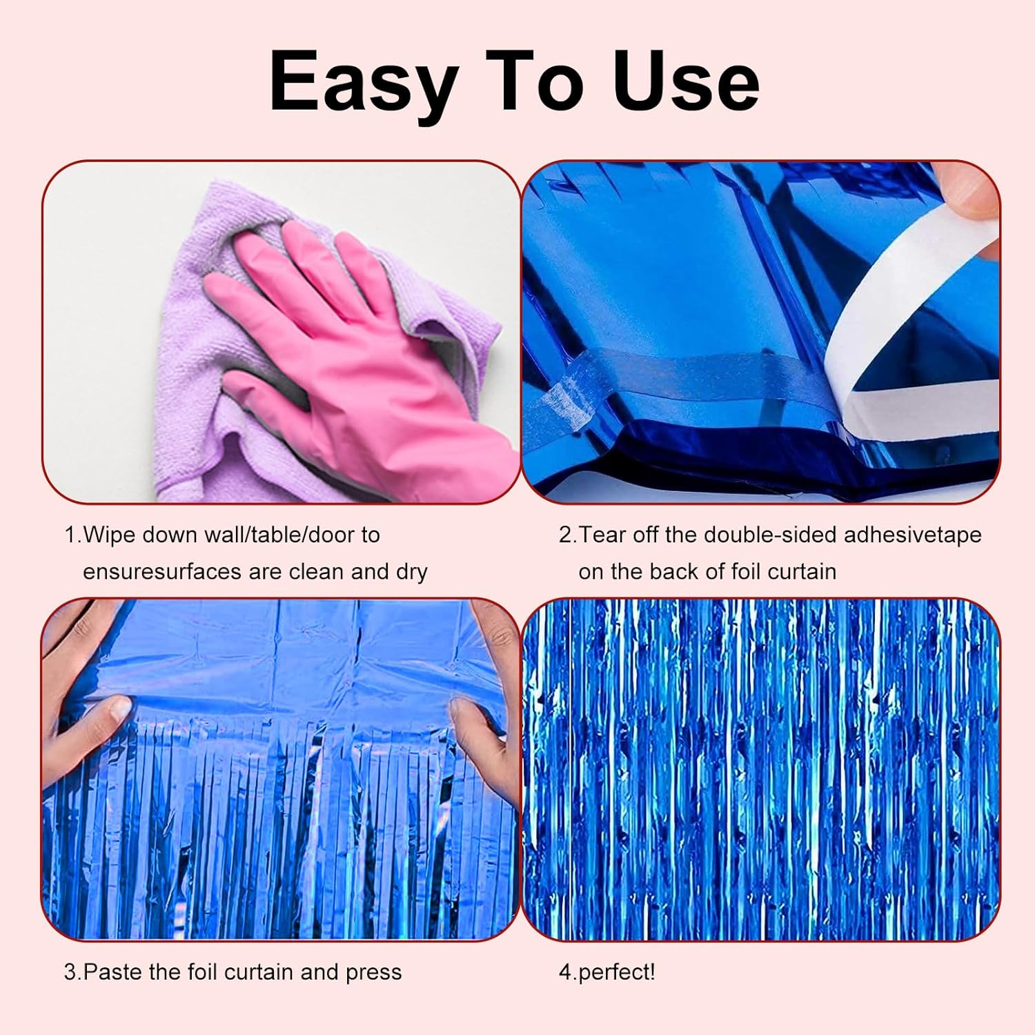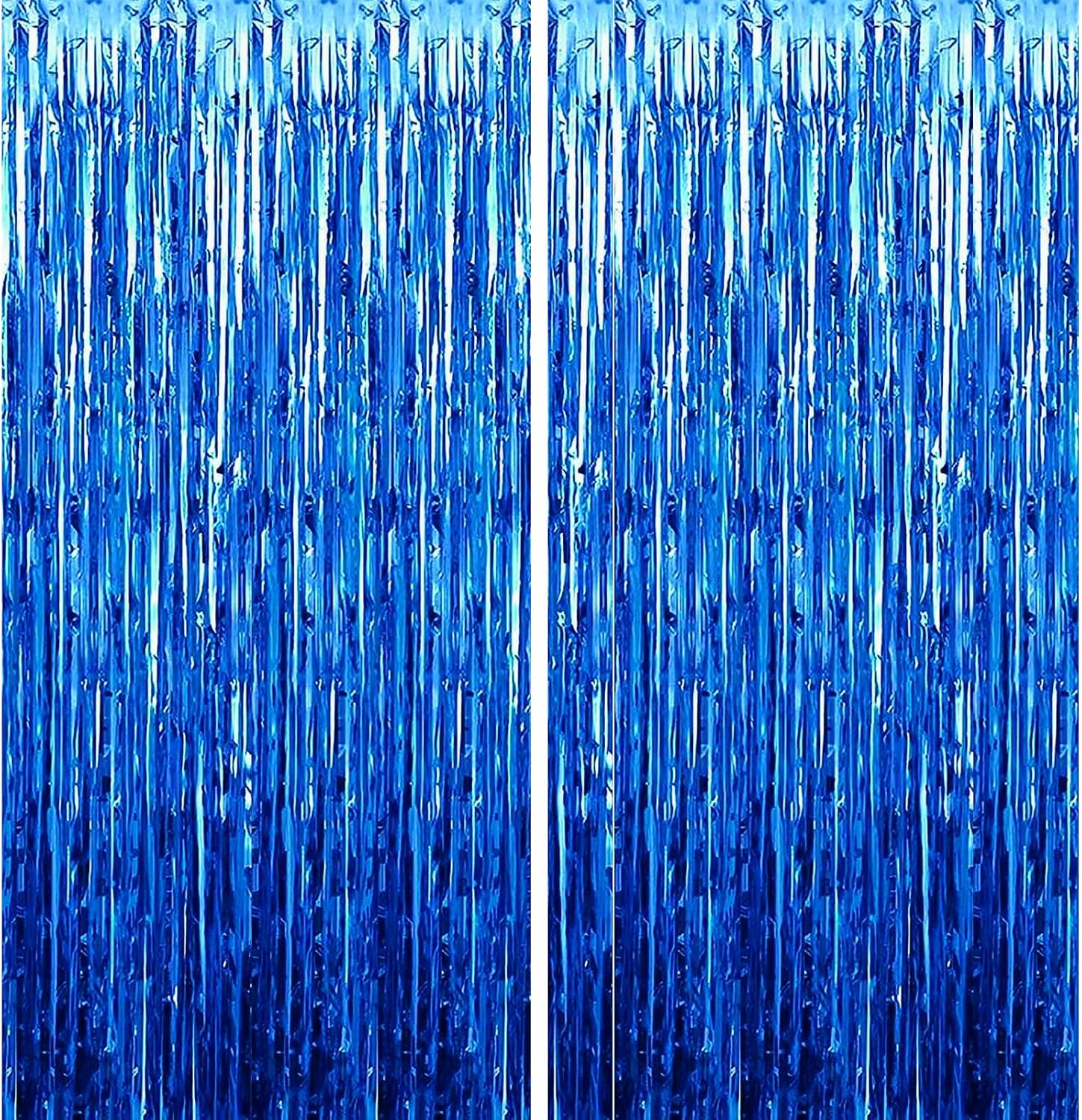 2 Pack 3.28 ft x 6.56 ft Blue Tinsel Curtain Party Backdrop Decorations, Metallic Foil Fringe Backdrop Door for Halloween, Christmas, Birthday Graduatio