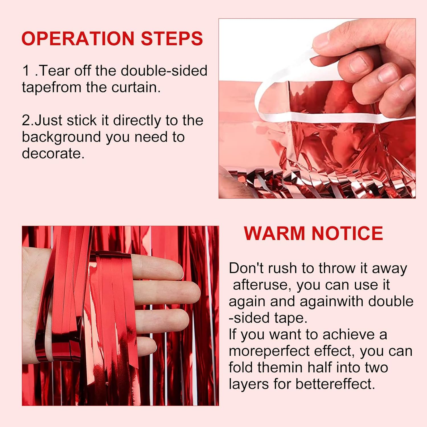 - Streamers Reusable:Tear off the back of the adhesive tape, then paste this fringe curtain on the top of the wall, window, table, door, Either to fix on wall via fishing line,or anywhere you like to light up your party.