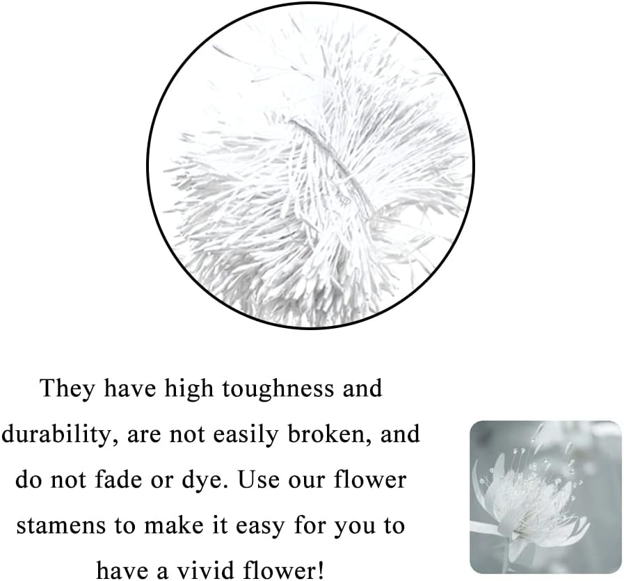 - Materials: Our 100% hand-made pearl flower stamens are made of high-quality gypsum and flexible cotton thread. They have high toughness and durability, are not easily broken, and do not fade or dye. Use our flower stamens to make it easy for you to have a vivid flower!