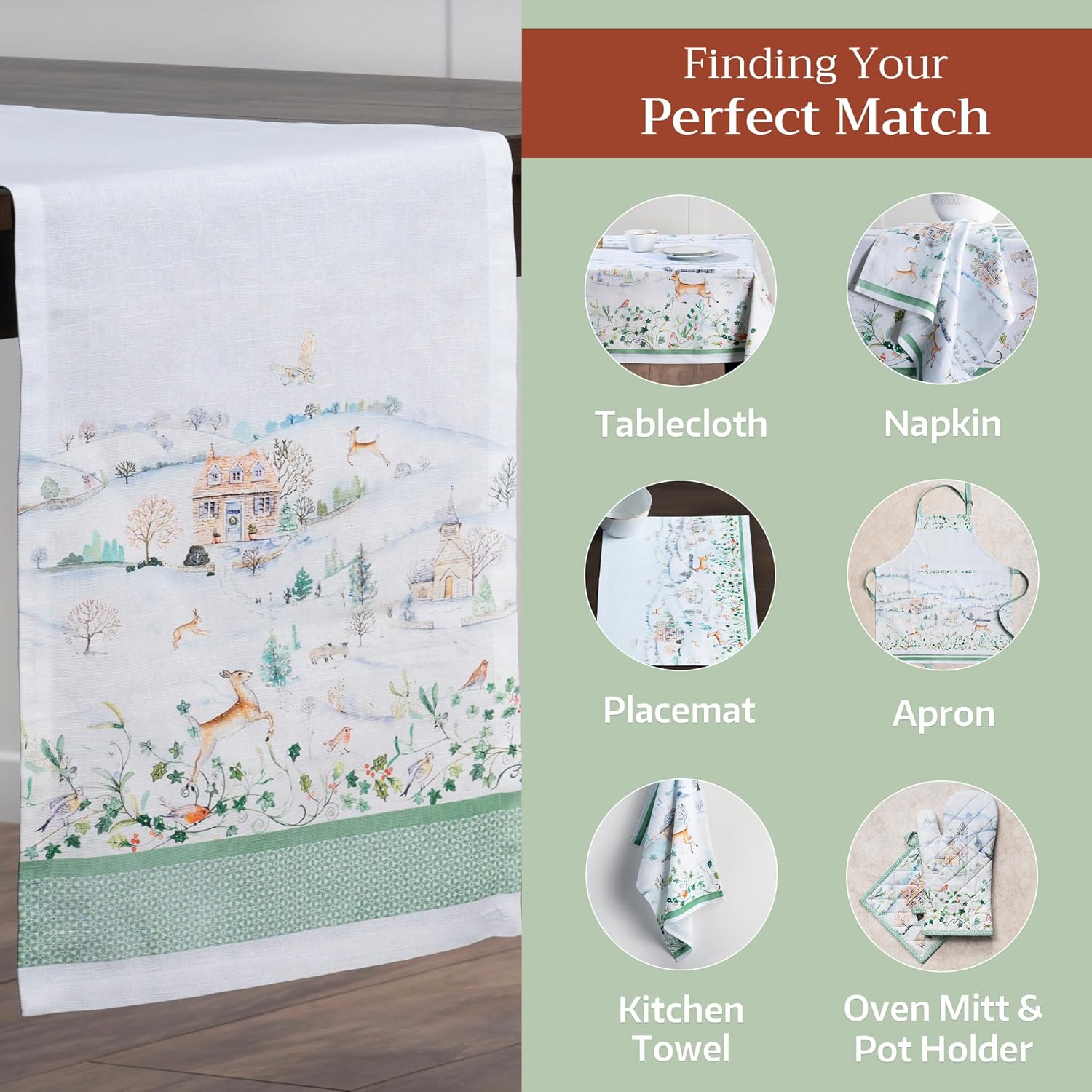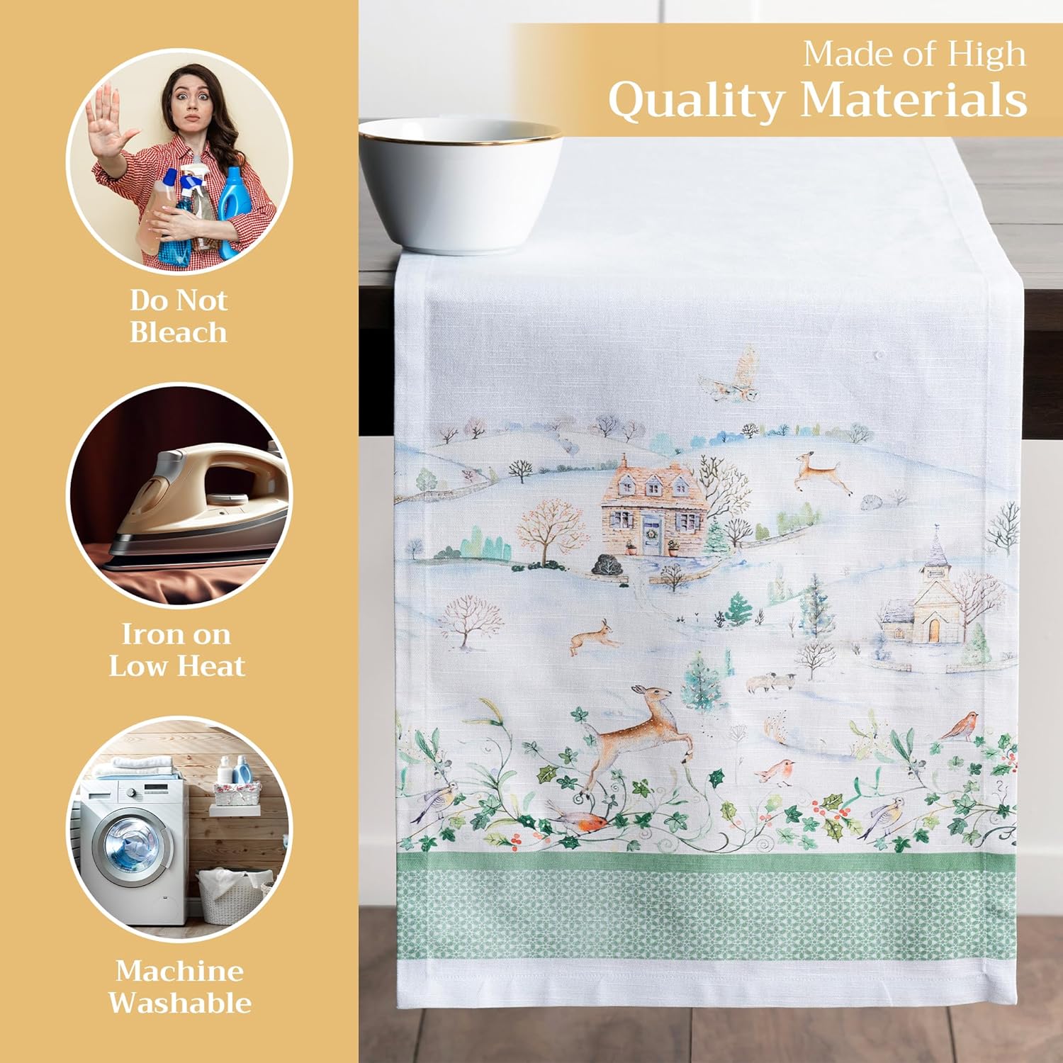 Maison d' Hermine Table Runner 100% Cotton Single Layer Table Runners 108 inches Long for Thanksgiving Christmas Decorations Home Kitchen Dining Party Wedding (Snowy World, 14.5" x 108")
