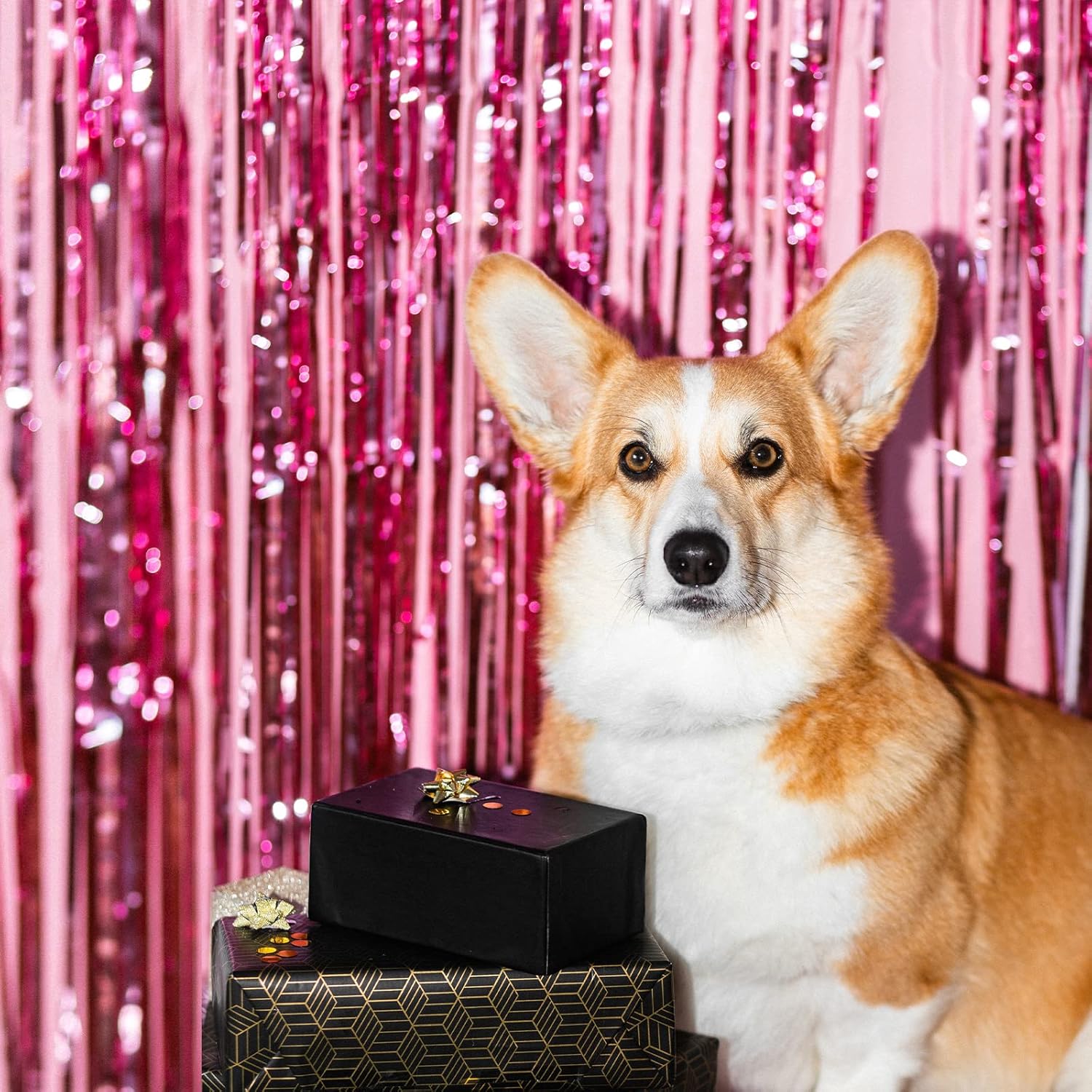 10 Pack Pink Backdrop Curtain 3.2ft x 8.2ft Metallic Tinsel Foil Fringe Curtains Photo Booth Background for Birthday Party Decoration Baby Shower Engagement Wedding Christmas Decoration (Pink)