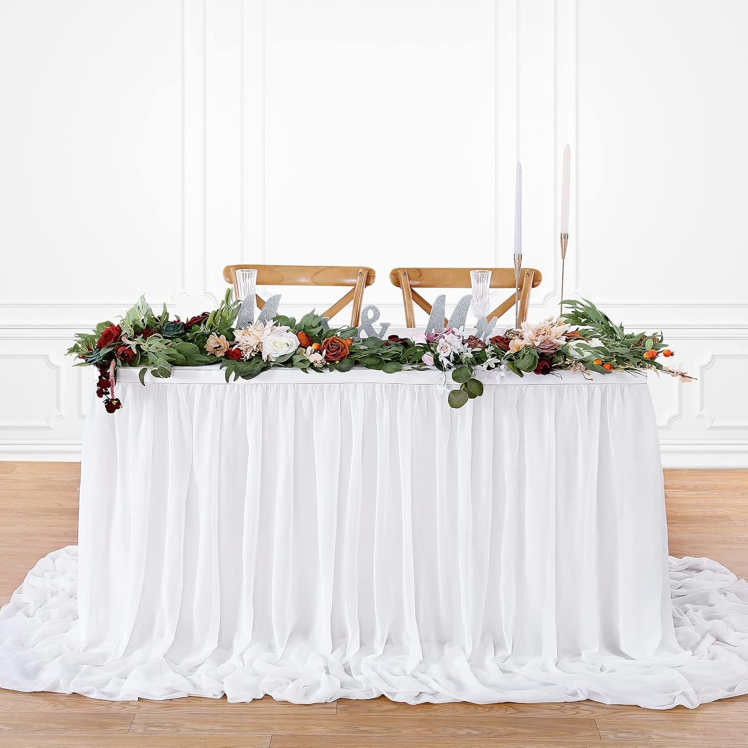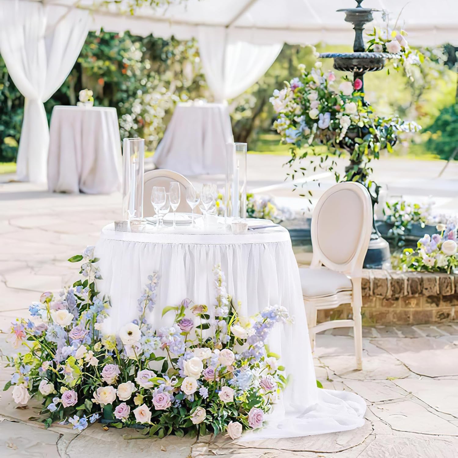 - 💡 White Table Skirt Material: The extra long chiffon table skirt is made of Sheer Chiffon which is wrinkle-free, soft, and with a nice drapery. Table skirt both robust for kids birthday party supplies and elegant if used for wedding decoration.