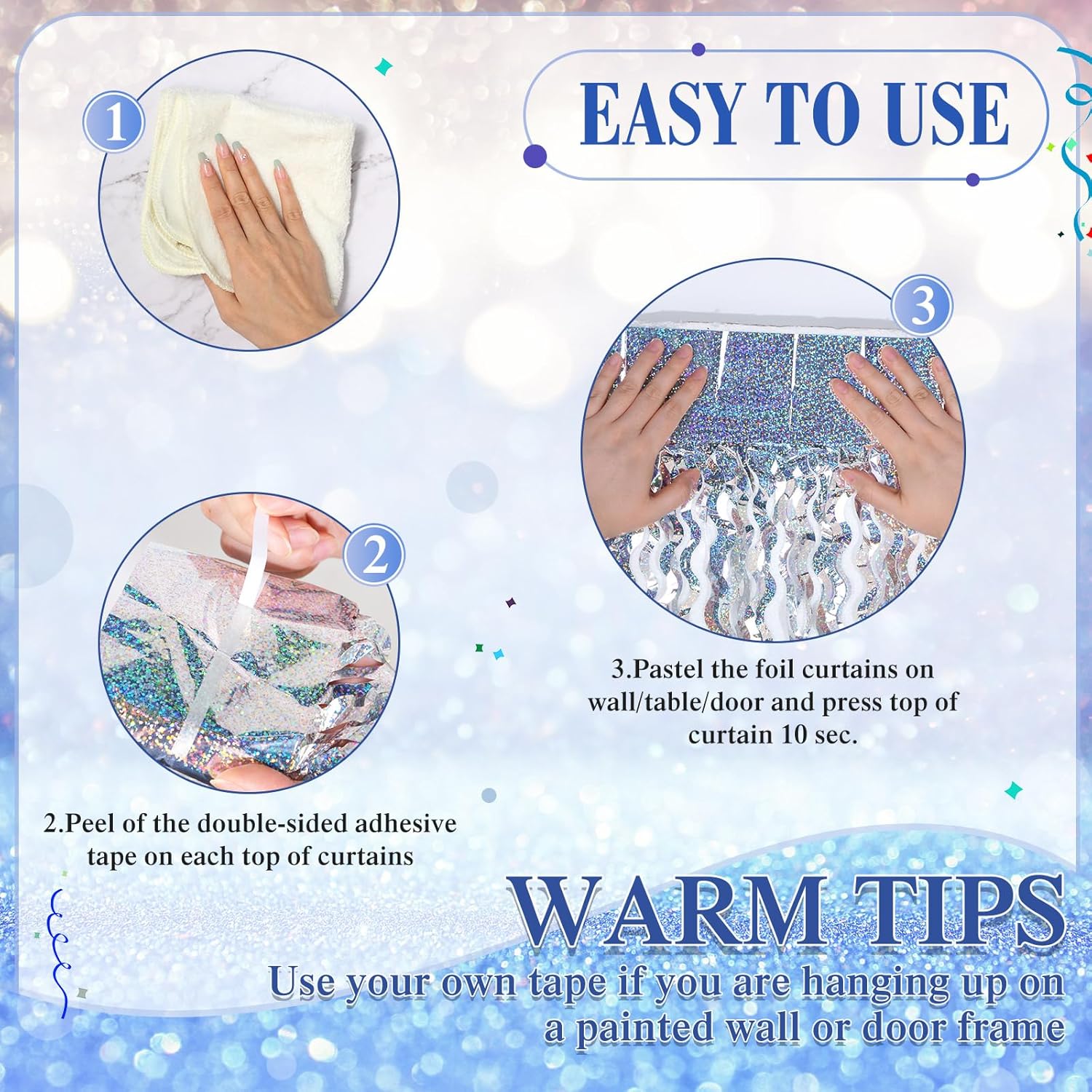 - Suitable Size: each silver tinsel backdrop measures about 3.3 feet/ 1 meter wide and 6.6 feet/ 2 meters long, long enough for you to decorate your wall, window, door and other places you want