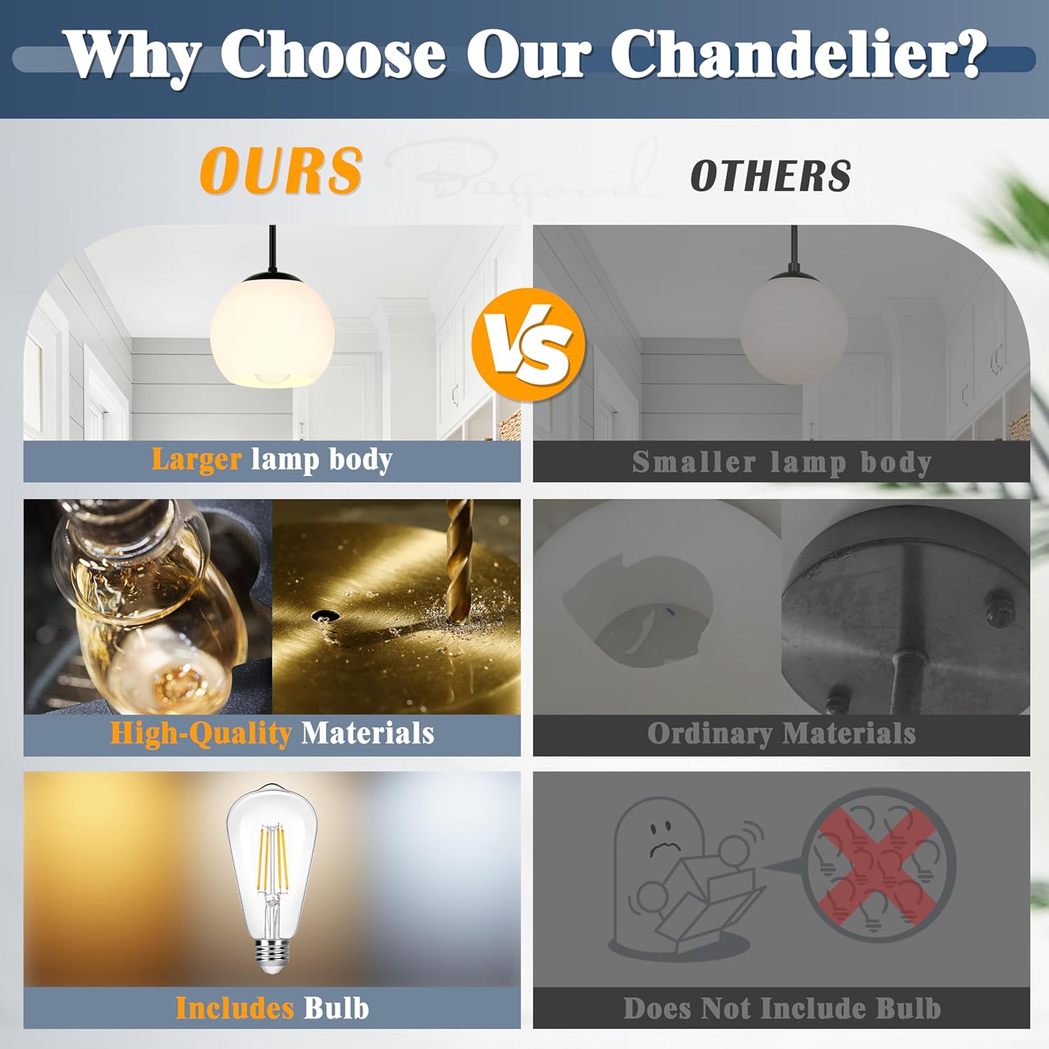 - [Bulbs Included & Dimmable]:The milk glass globe light fixture designed with 1 x E26 socket with a max power of 60W.When you buy other dimmable bulbs and combine it with a wall dimmer(not included) it can be fully dimmable. so you can use this fixture with confidence